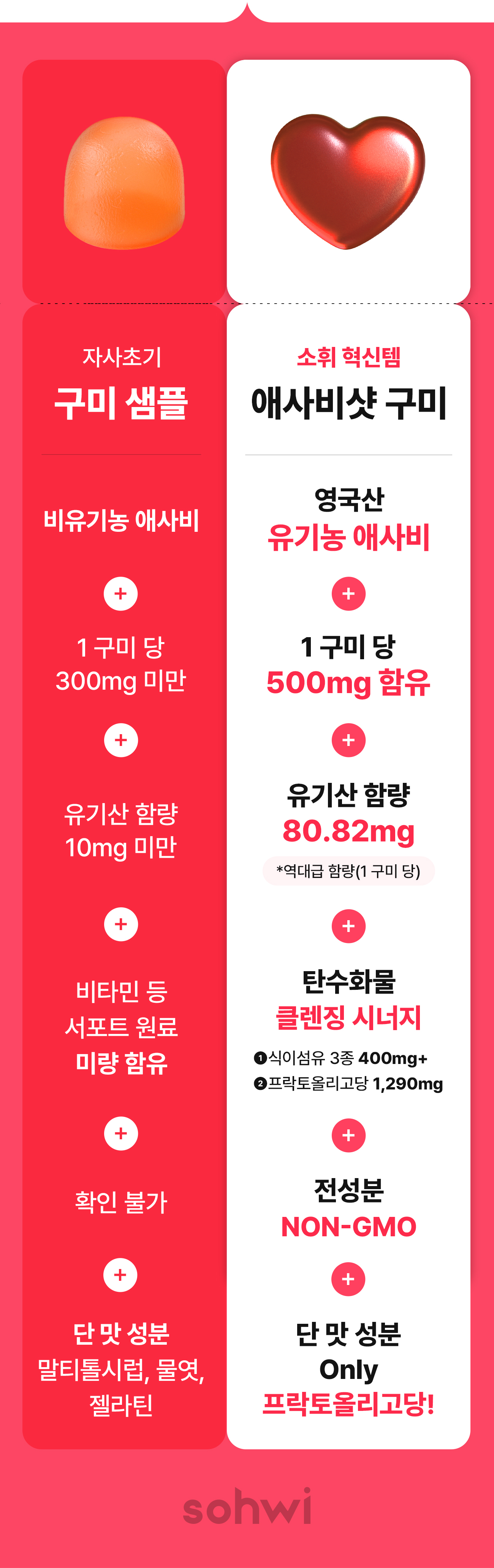 당류 0g 구미, 정말 만들고 싶었지만 첨가물을 넣는 방법뿐이더라고요. 눈속임 저당 제품을 만들 수는 없어서,당류 0g을 만들지는 못해도 좋은 성분을 넣었습니다. 부끄러운 성분은 최대한 지양했어요.