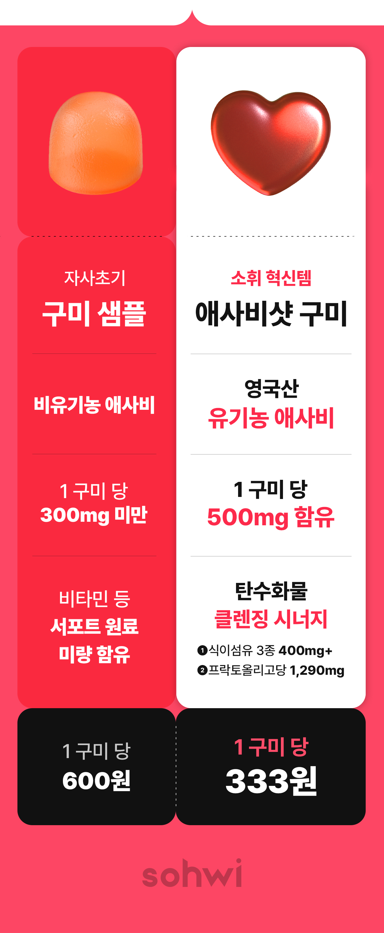 제품 개발자인 저는 건강을 엄청 생각해서 액상 과당, 배달음식은 거의 먹지 않아요. 클렌즈 워터, 음식도 직접 만들어 먹죠. 근데 딱 하나 포기 못하겠는 게 젤리예요. 어느 날 곰돌이 젤리를 맛있게 먹다가 이런 생각이 들더라구요 . '좋은 거 백날 해먹으면서, 이렇게 맨날 젤리를 먹으면 무슨 의미가 있을까' 정말 단순하게 이렇게 시작했어요. 구미를 맛있고 건강하게 만들어 보자.