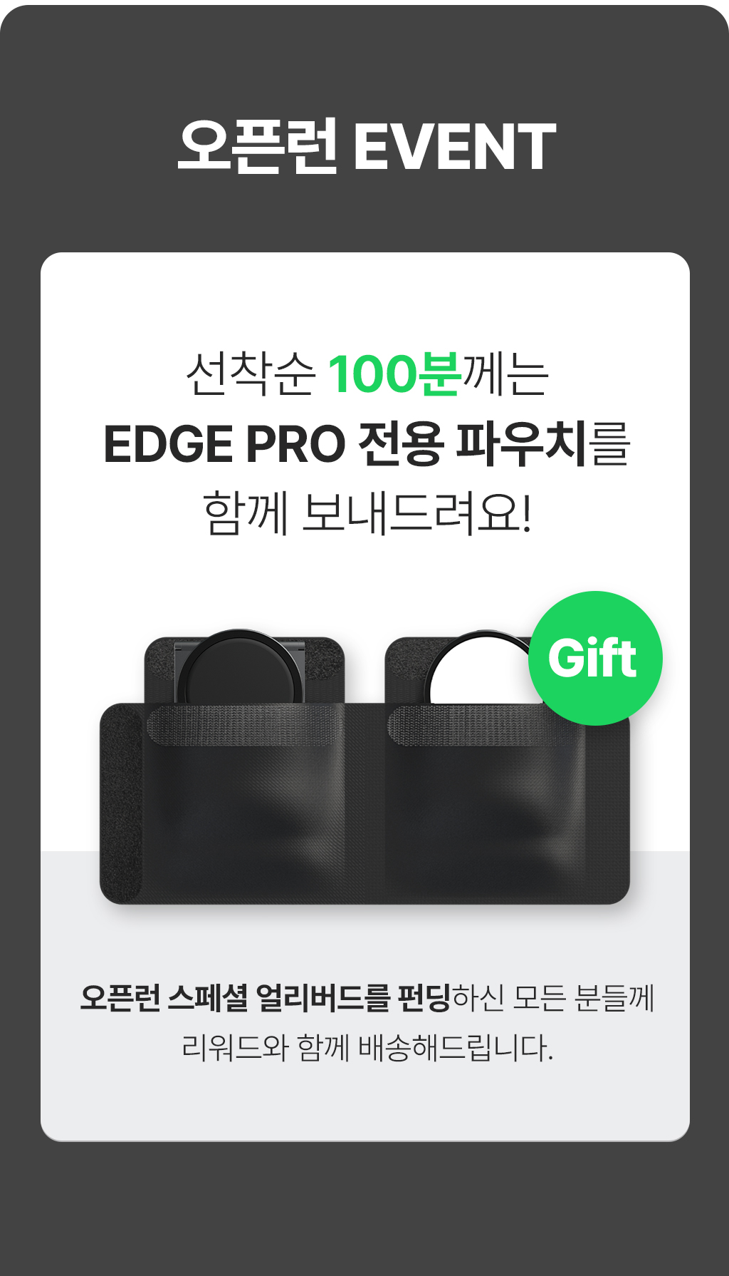 - 리워드 수령 후 7일 간은 와디즈 환불정책이 우선 됩니다.