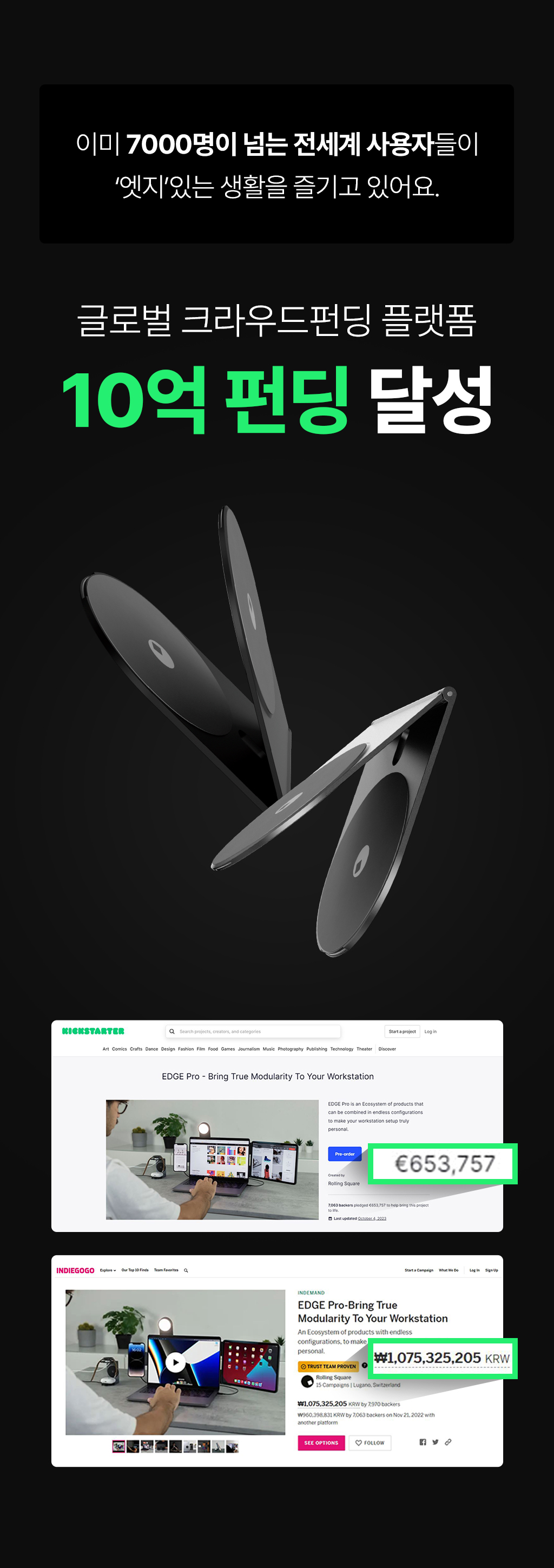 Rolling Square는 글로벌 크라우드펀딩 플랫폼인 킥스타터와 인디고고에서 14번의 성공적인 캠페인을 진행했습니다. 이를 통해 1천만 달러 이상을 모았으며, 22만 명 이상의 만족스러운 후원자들을 모았습니다. 우리는 혁신에 대한 열망과 기술에 대한 높은 수요를 보이는 한국 시장에서도 우리 제품을 소개하고자 합니다. 한국의 라이프해커들과 함께 Rolling Square 제품을 경험하고, 우리의 혁신적인 제품으로 더 나은 미래를 만들어 나가길 바랍니다!