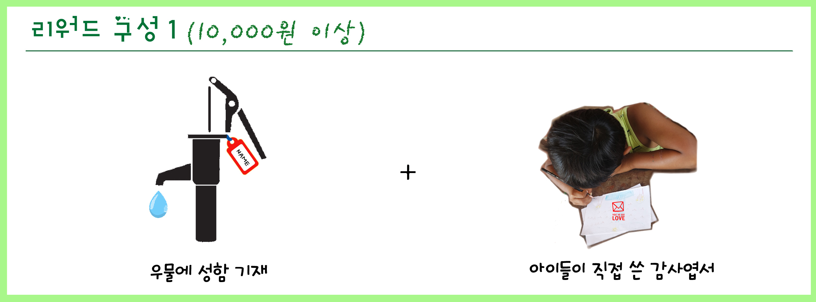 / 우물이 완공되는 즉시 후원자들의 성함을 기재하여 마을 아이들과 함께 찍은 사진을 한분한분 전송해 드립니다.