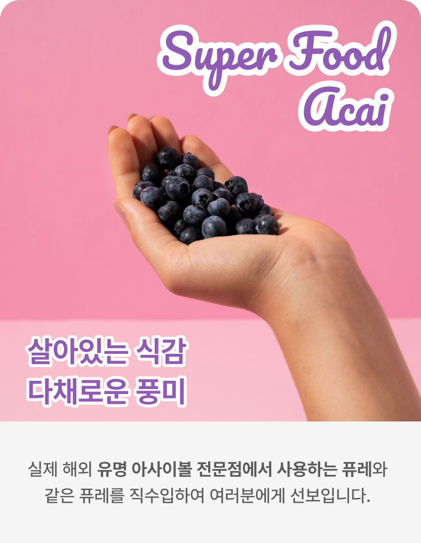 국내 대부분의 아사이볼은 아사이베리 파우더에 요거트를 섞어서 만들어집니다.
