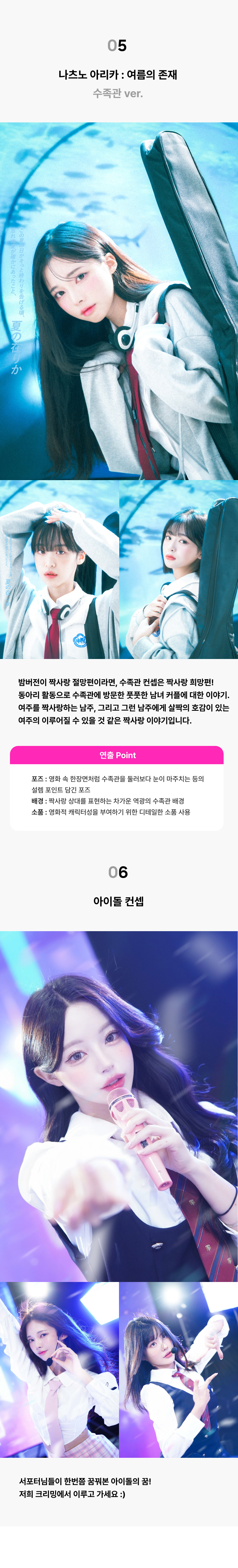 새로운 의상이나 소품, 새로운 세트 개발 등 보다 더욱 더 성장하여 서포터님들께 더욱 더 좋은 추억을 남겨드리기 위해 노력 할 것입니다.