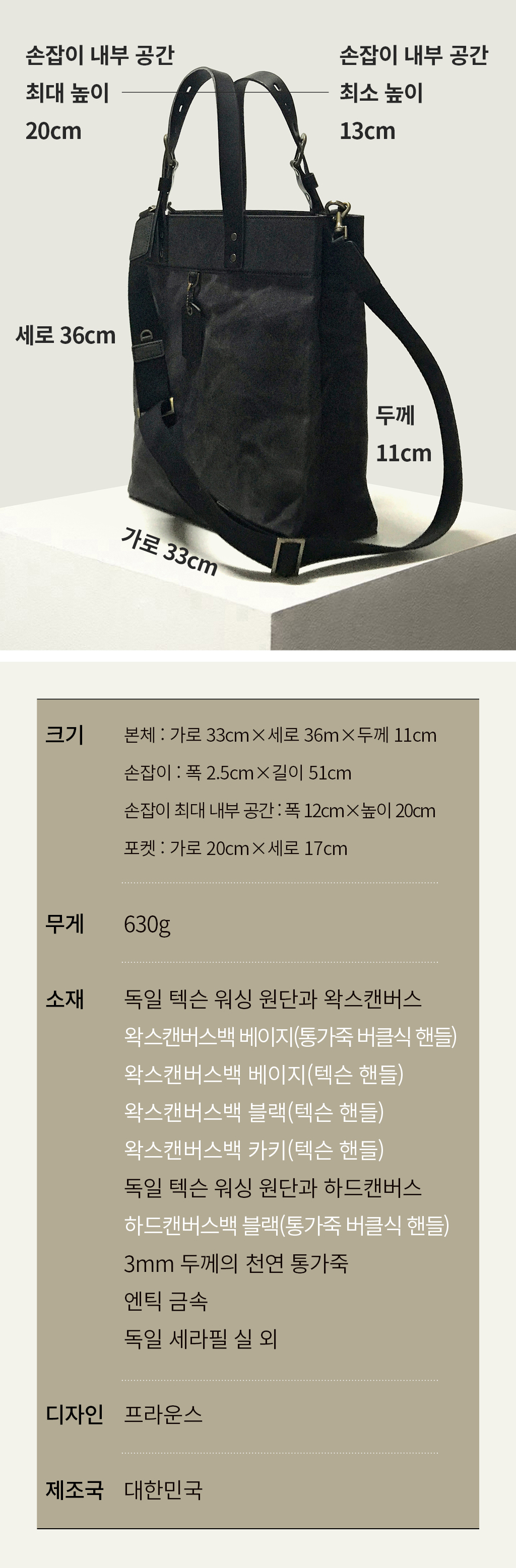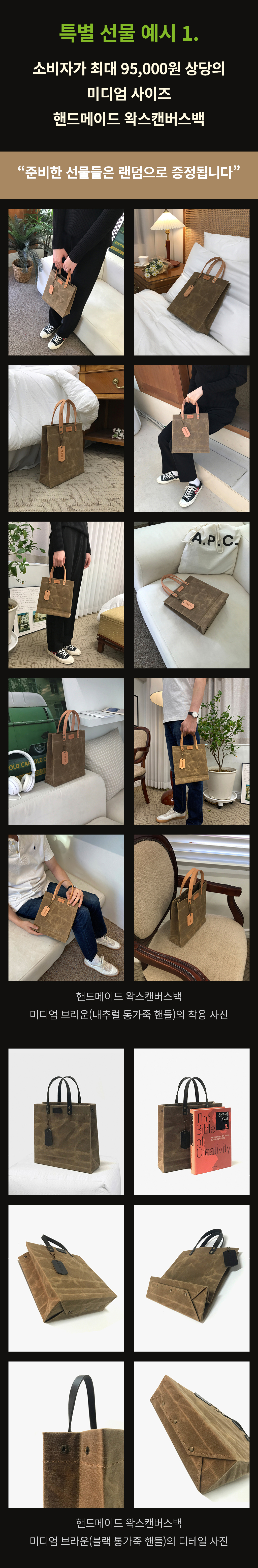 여기, 왁스캔버스백 디자인에