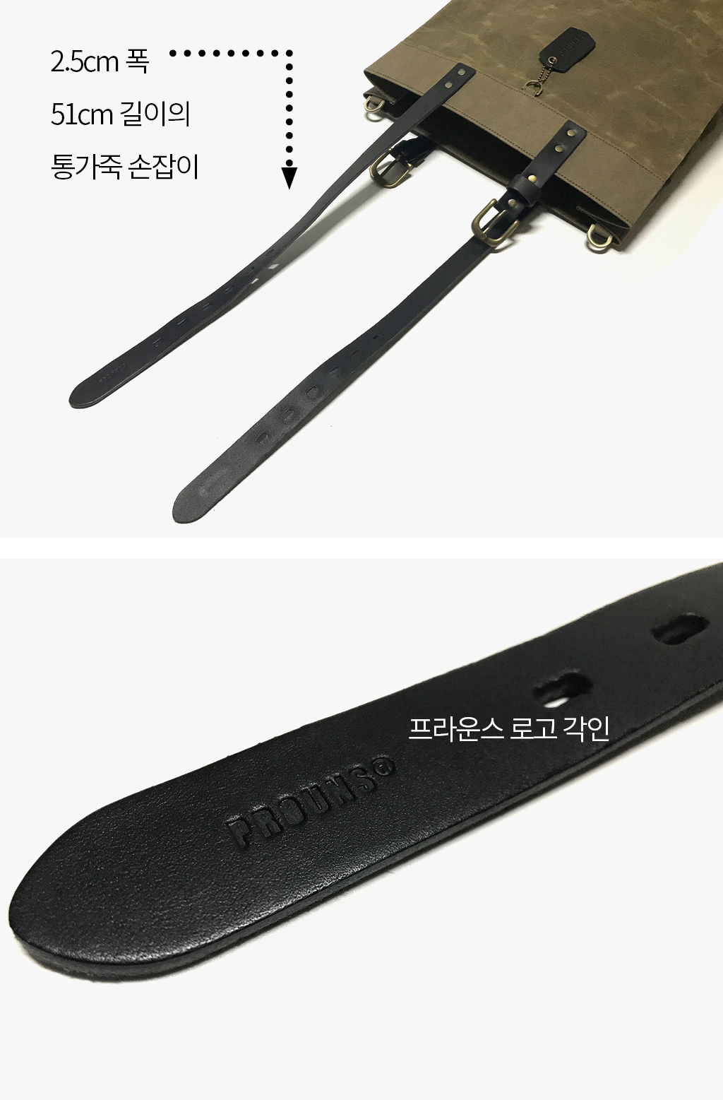 프라운스 텍슨 왁스캔버스 토트백에 사용된 '버클'과 '발 받침 스터드' 등의 금속 부자재들은 정확하게 설계하여 국내에서 주문 제작하여 만든 부자재입니다. 제작 단가 상승 요인이기도 하지만.. 높은 품질을 유지하고픈 프라운스의 기본 정책 때문이기도 하지요.