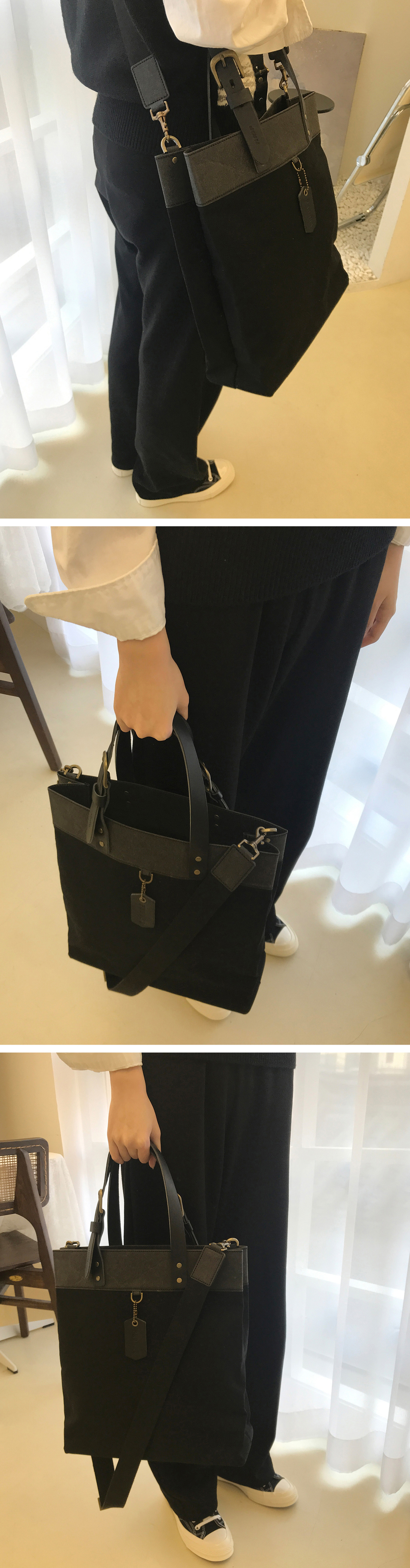 하드캔버스백 블랙(통가죽 버클식 핸들)