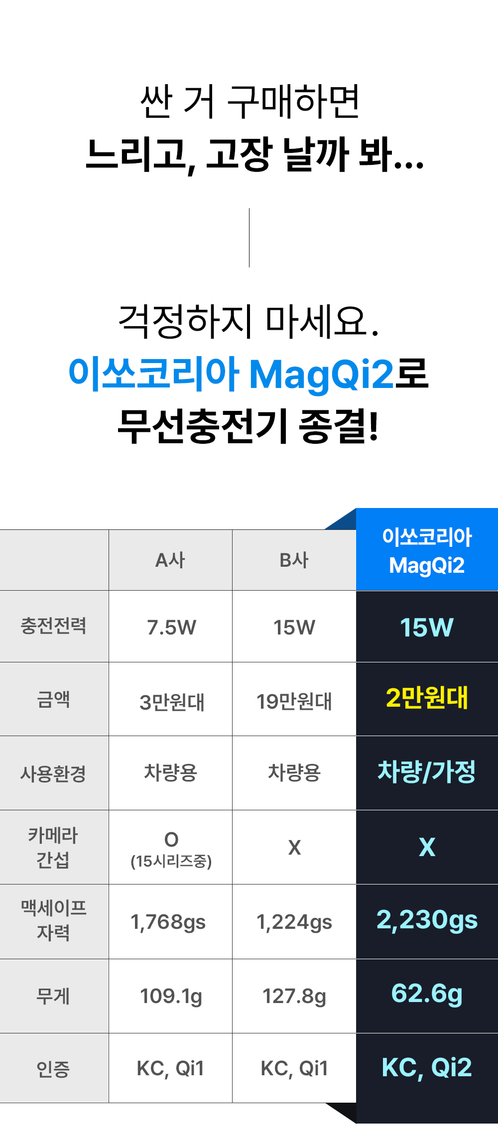 차량용 거치대의 혁신이였던 흡착식 거치대(VWC15) 의 시작을 밑바탕으로 많은 피드백과 서포터님들의 커뮤니티를 통해 전세계 새로운 표준 규격인 Qi2무선 충전기를 준비하며 차량용에 국한 되는 것이 아닌 사무실, 가정에서도 사용하실 수 있도록 실용성을 높히고자 노력했습니다.