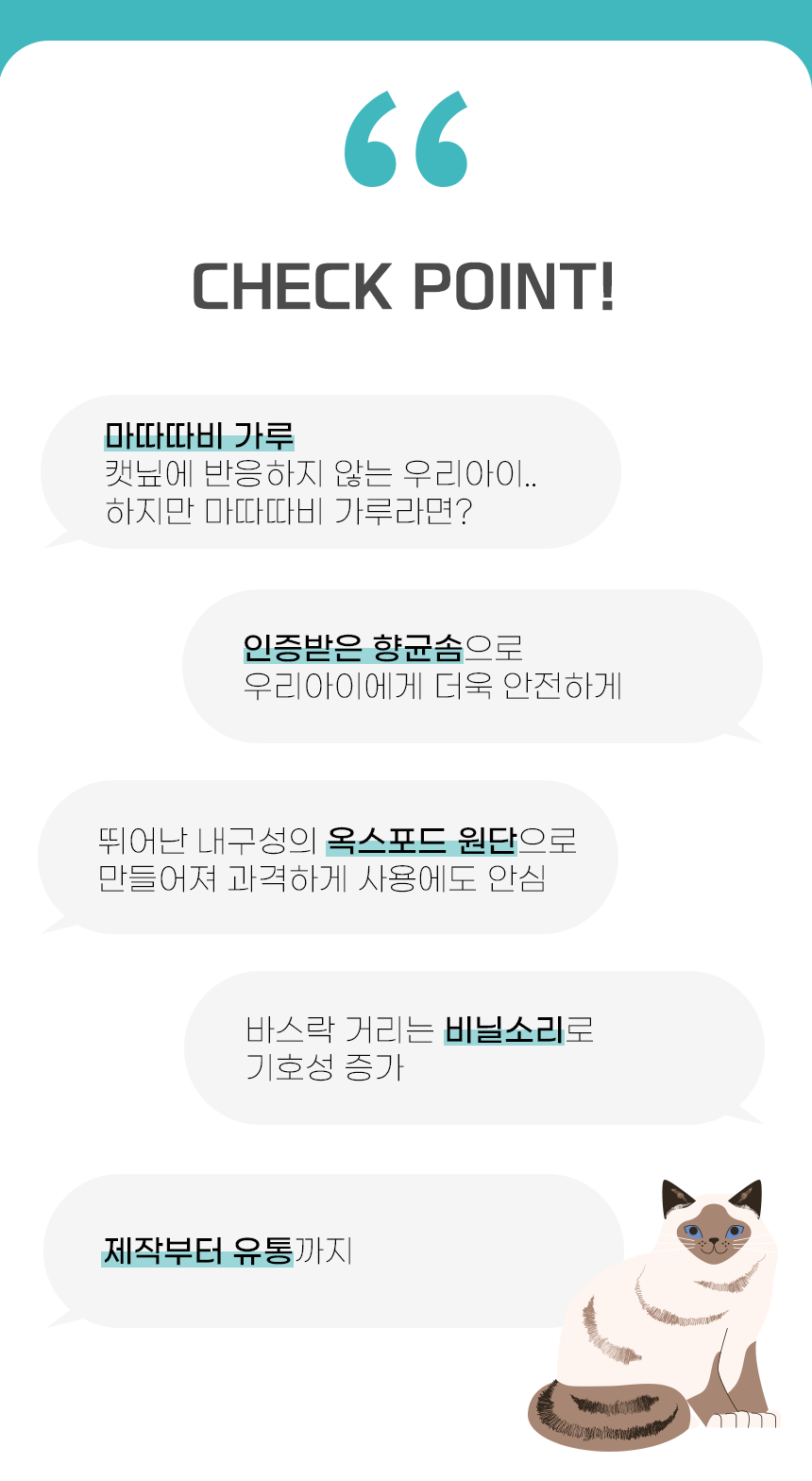 개다래의 일종으로 캣닢 반응률 60%에 비해 훨씬 높은 80%의 반응률, 사람에게 약초와 차로 사용되기도 하는 만큼 안전합니다. 특히 분말이라 타 제품의 잎사귀가 이빨 사이에 낄 수도 있는 제품과 차별화 된 고양이에게도 안전한 분말가루를 사용합니다.