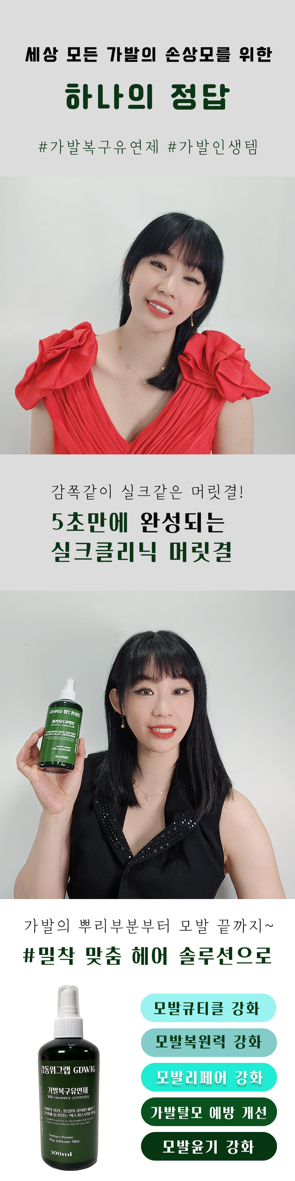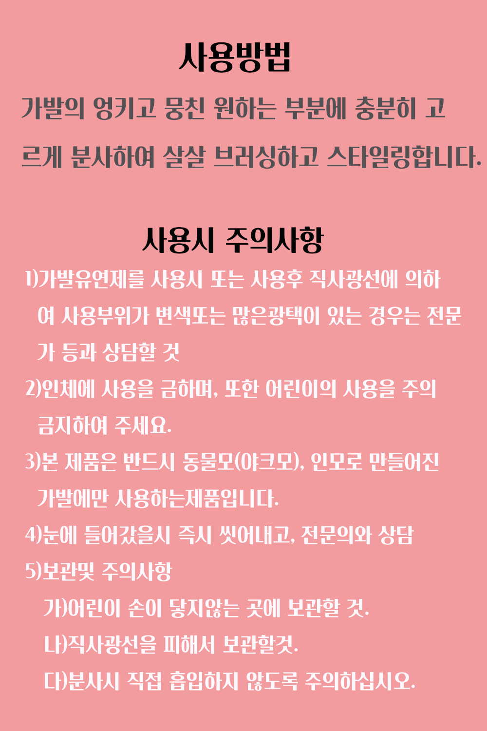 단, 인체에 사용은 안되고, 인모로 만들어진 모든 가발, 부분가발, 통가발, 맞춤가발, 긴머리가발, 헤어피스, 붙임머리에만 사용해주세요!