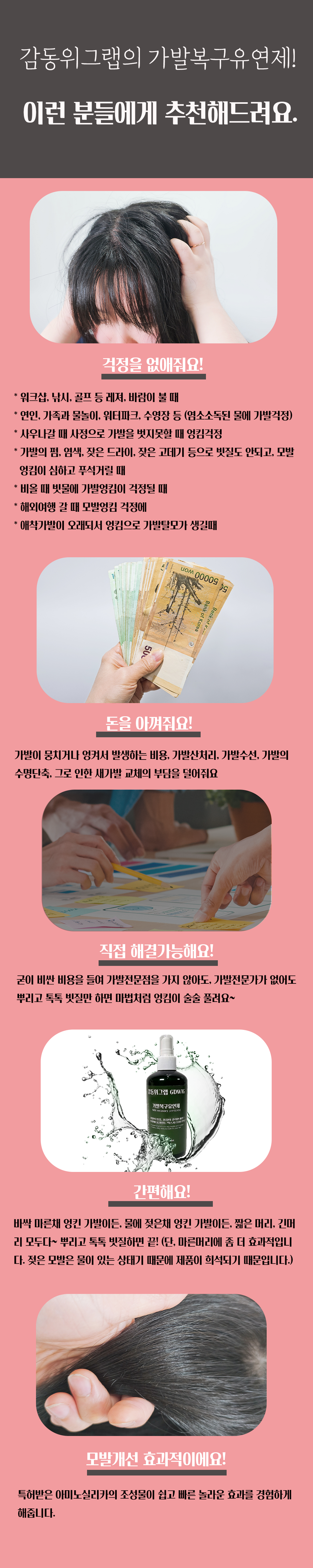 이제 가발 엉킴 걱정은 이 가발복구유연제로 모두 해결할 수 있어요!