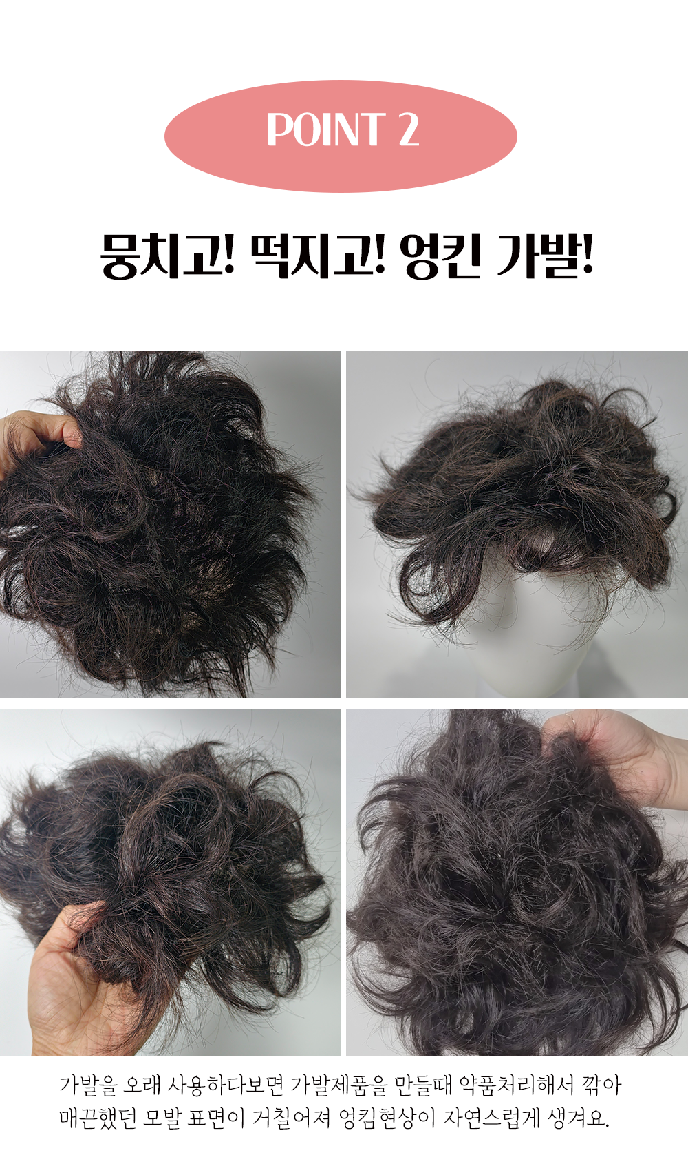 한번 뭉친 가발은 모발이 큐티클(겉면의 거칠기)가 뒤엉켜 딱딱해진 상태가 되면, 물리적인 방법으로는 절대 풀 수가 없습니다.