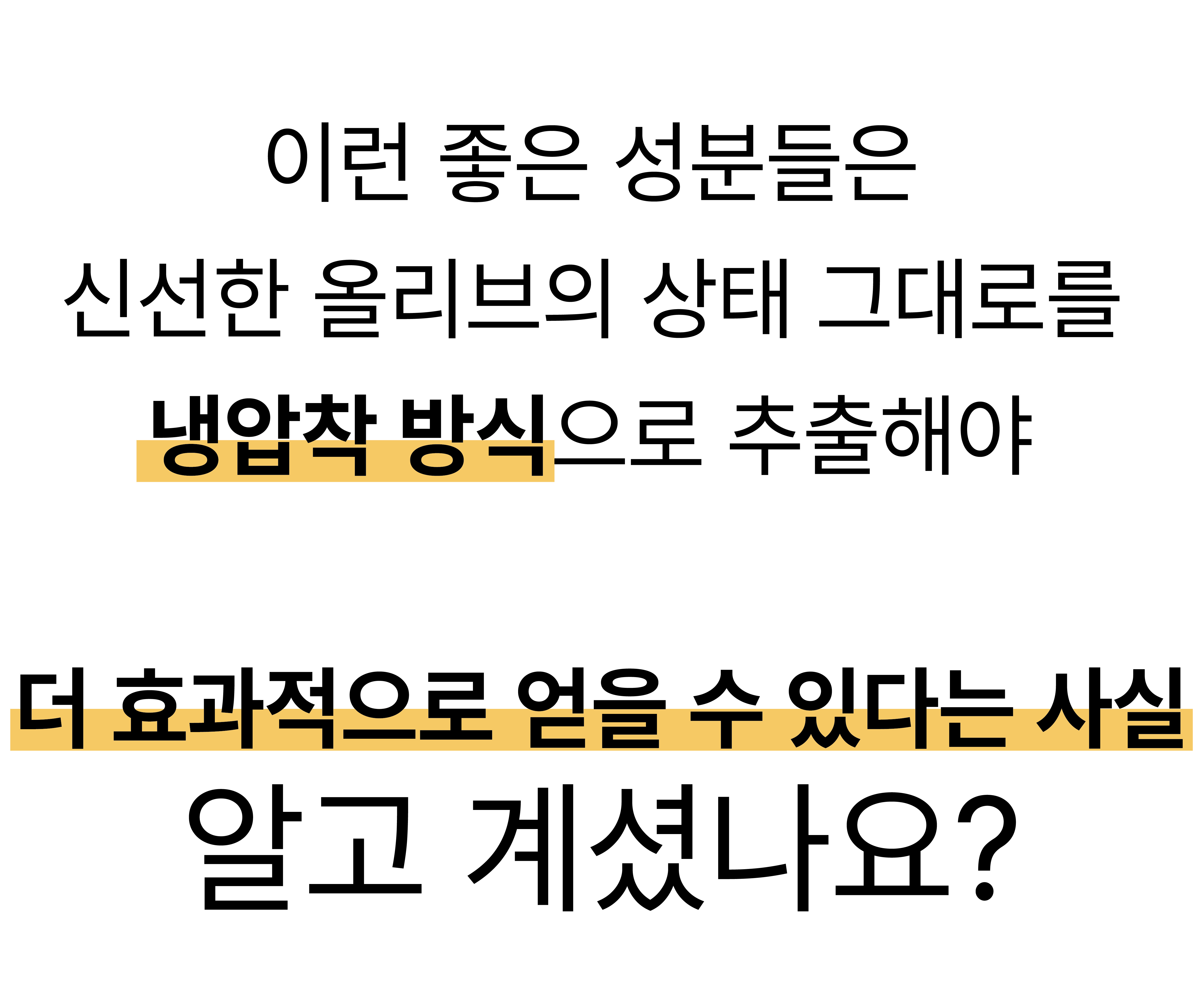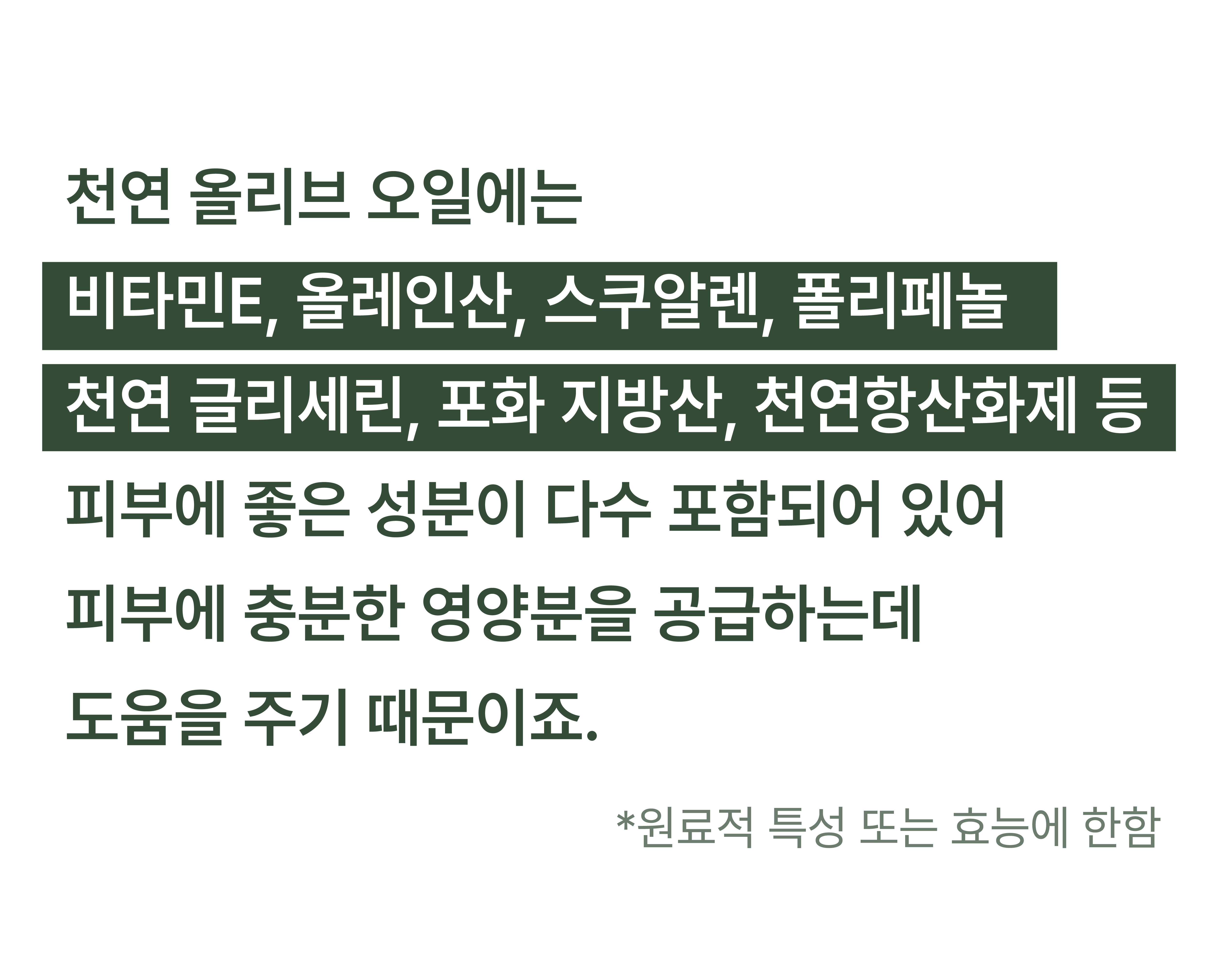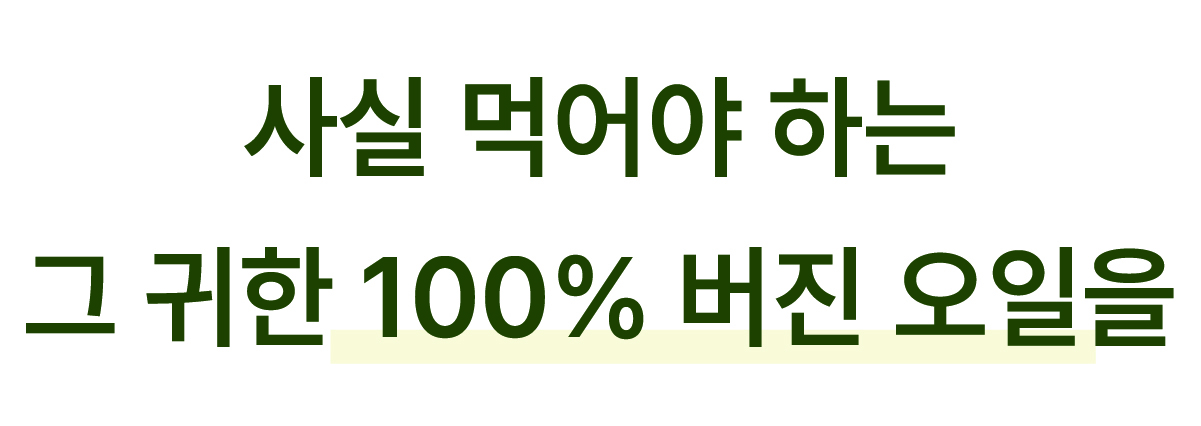 <THE ONE & ONLY 100% 버진올리브 오일> 이 캐치 프레이즈 안에 정말 많은 의미가 담겨있습니다. 올리벨라 제품의 장점은 바로 원료 그 자체입니다.