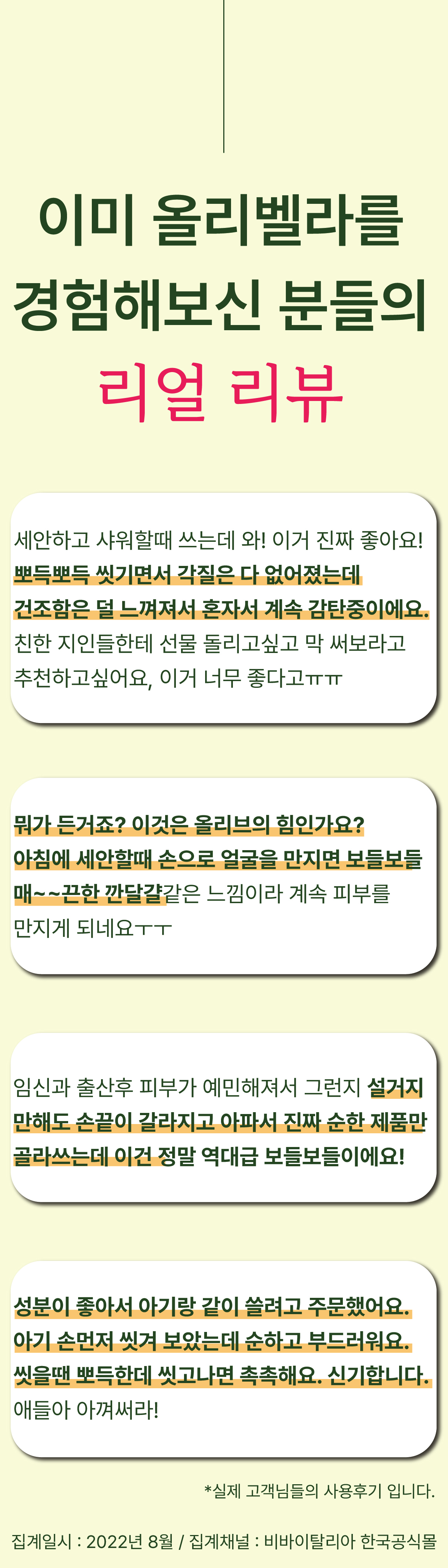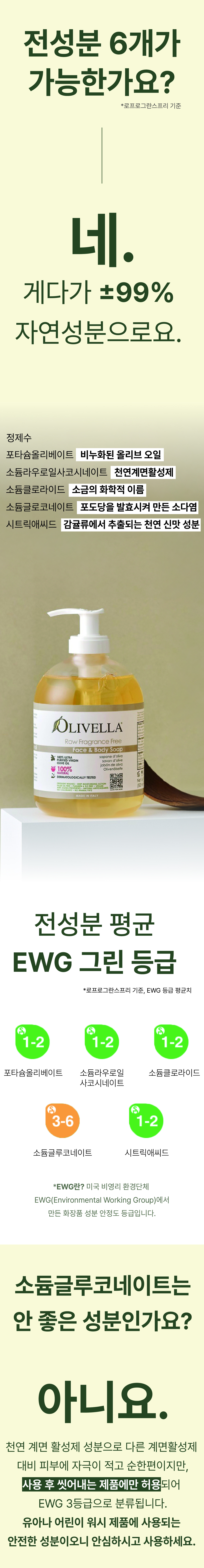 Q. 올리벨라 페이스 바이 리퀴드 솝은 안전한 성분을 사용했나요?