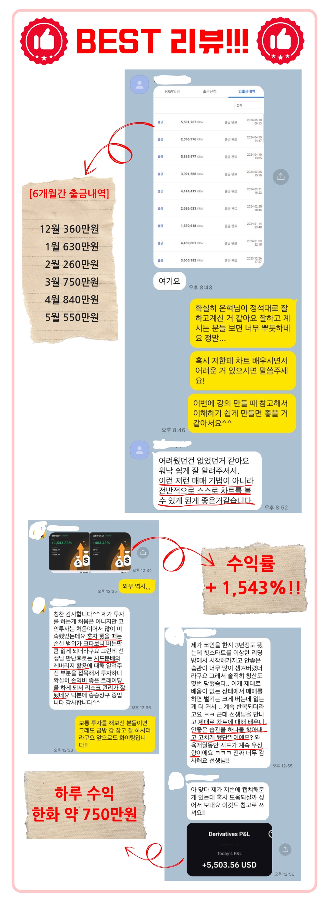 테스터 수강생들의 최근 6개월 수익률입니다.