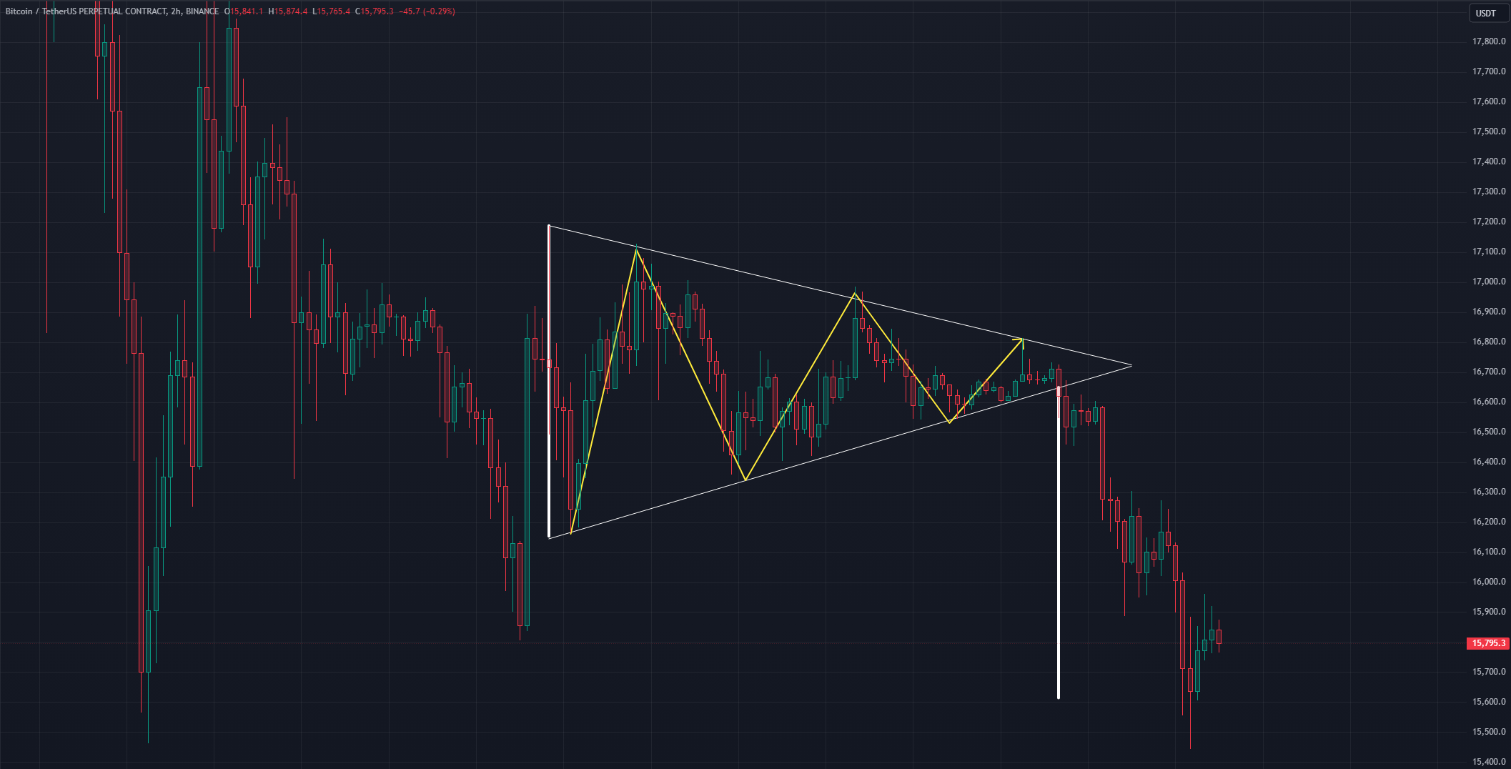 지지 구간을 이탈했기에 다시 저점 근처 or 그 이하까지 하락의 가능성이 보임