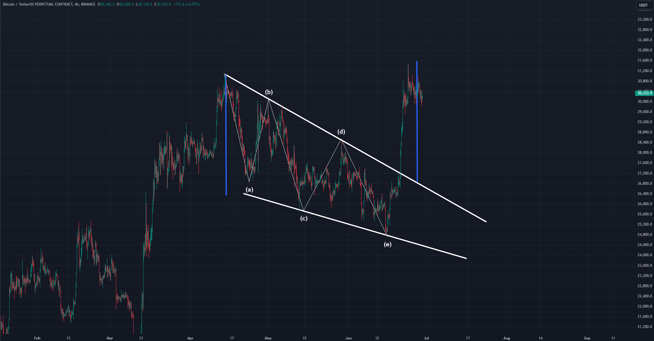 내부적으로 5개의 파동 움직임이 관찰되며,