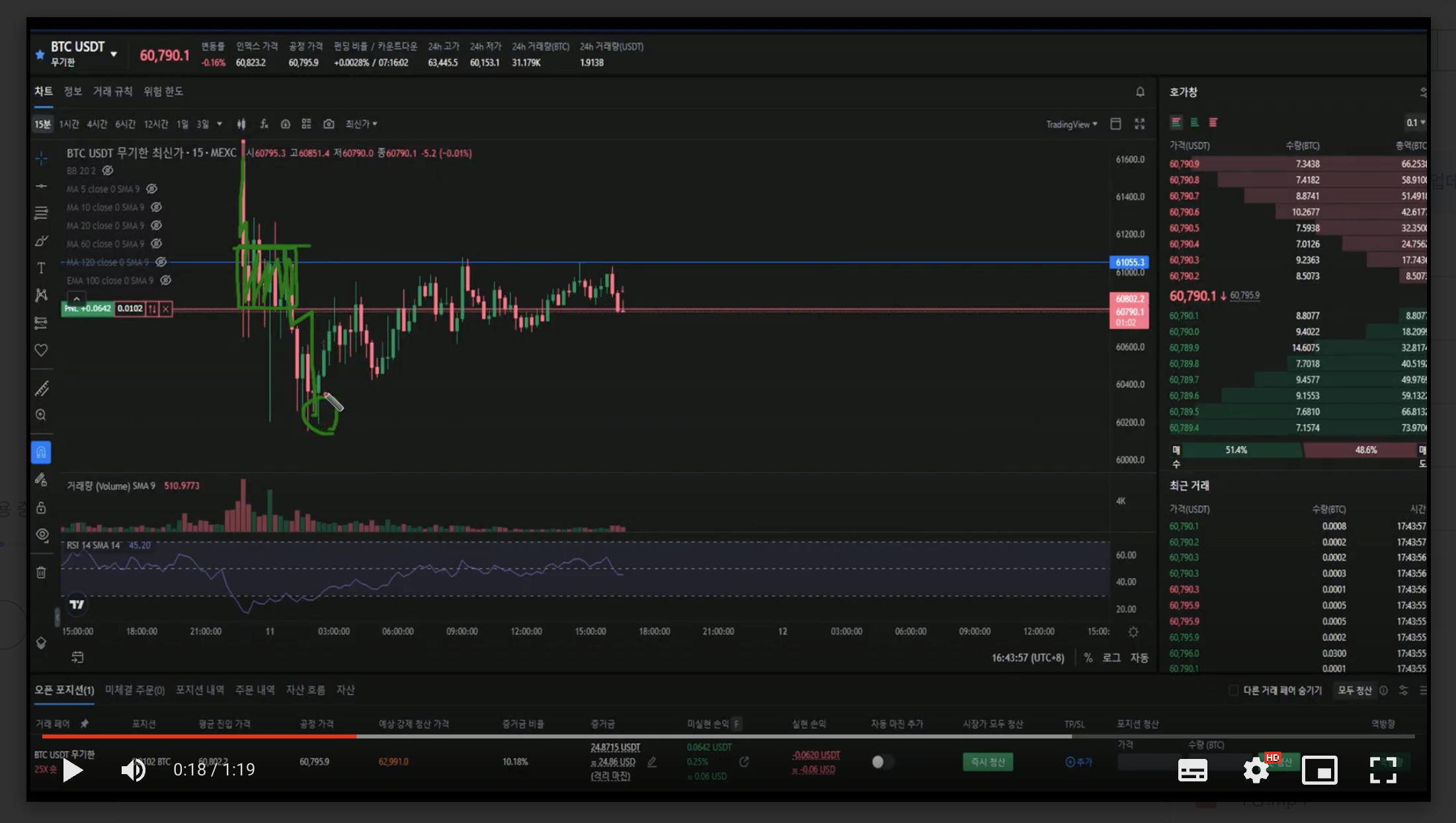 영상의 내용에는 실제 매매를 통해