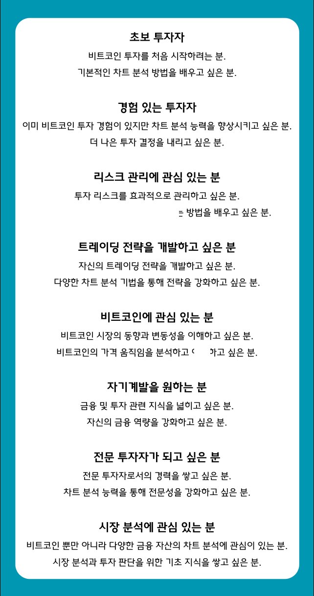 이러한 이유들로, 저희는 와디즈에서 비트코인 차트 분석 강의를 선보이게 되었습니다.