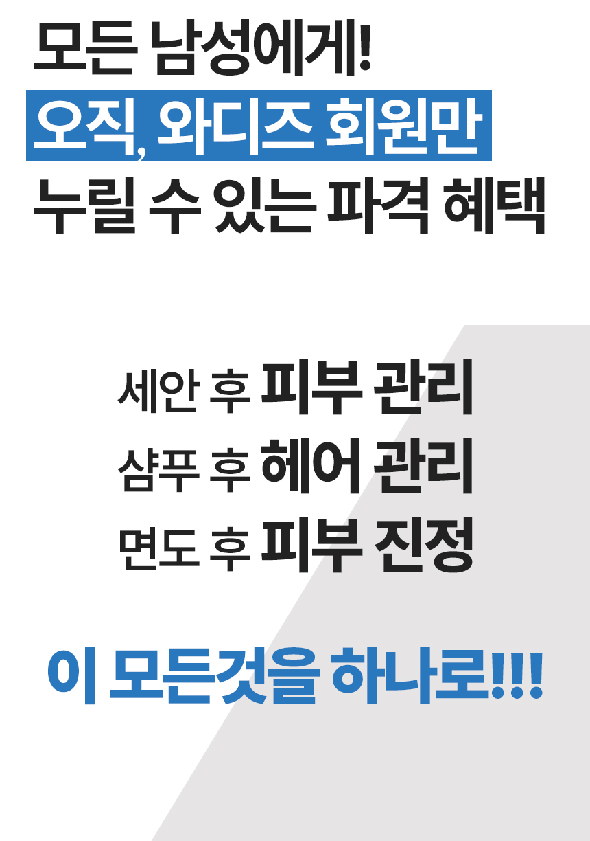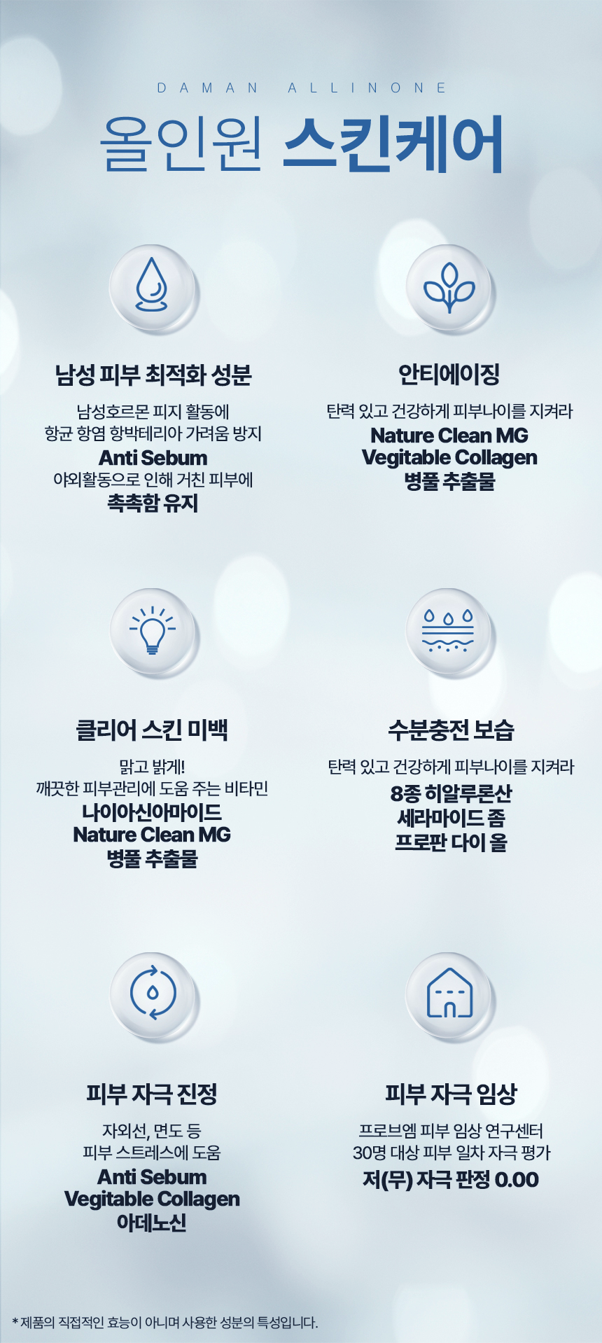 전 연령 남성의 모든 피부 문제를 케어합니다