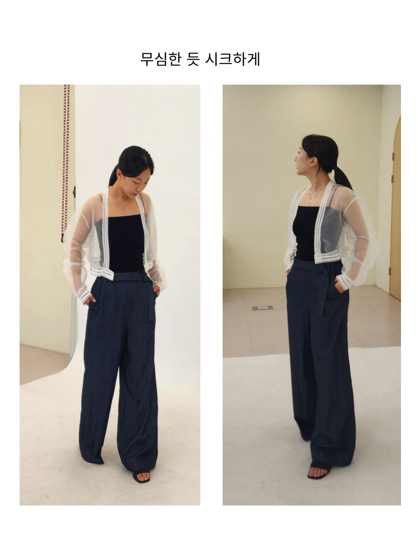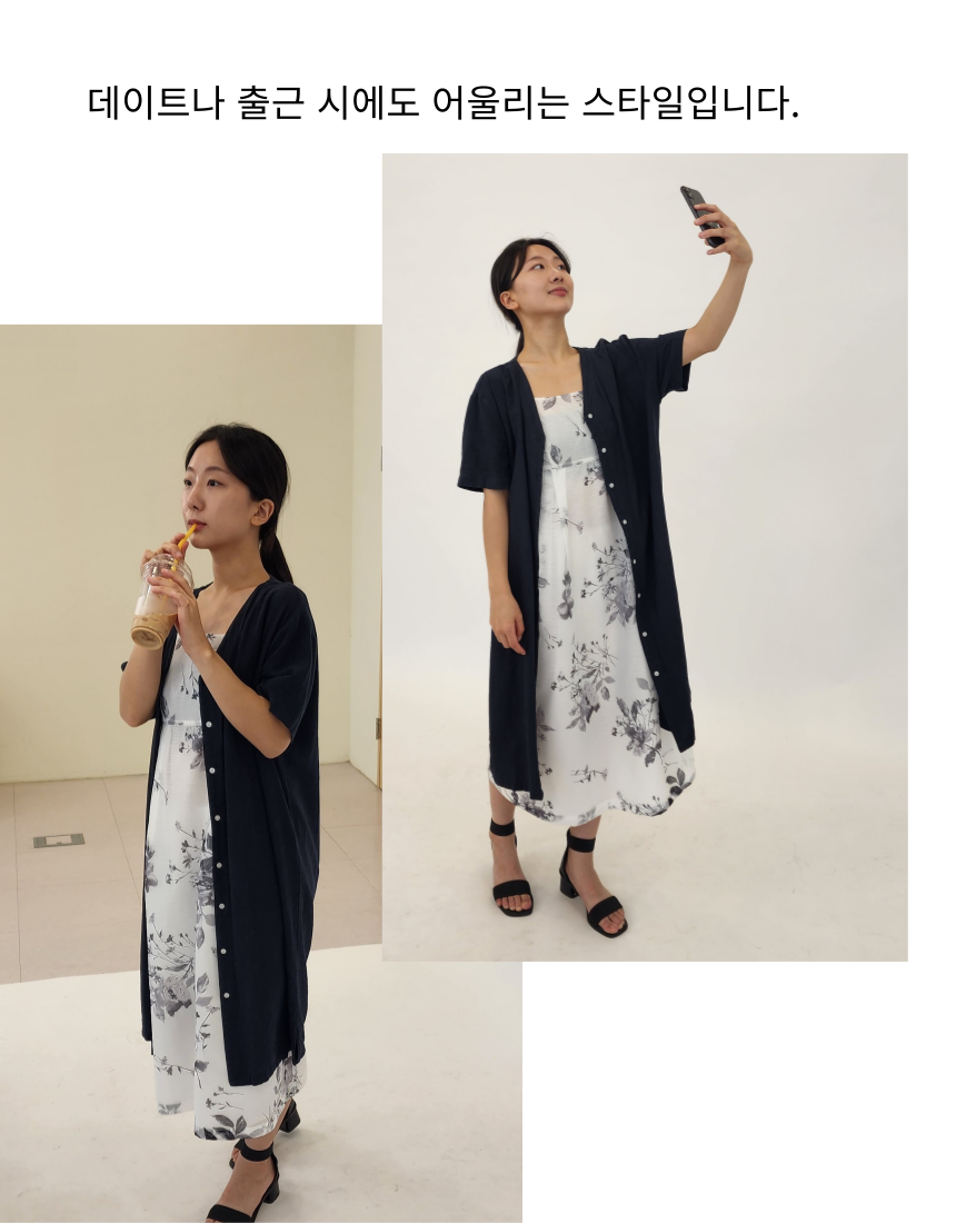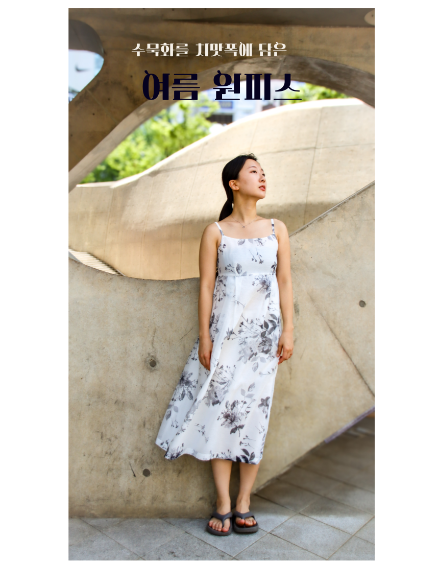 수묵화 끈 나시 원피스와 오간자 자켓