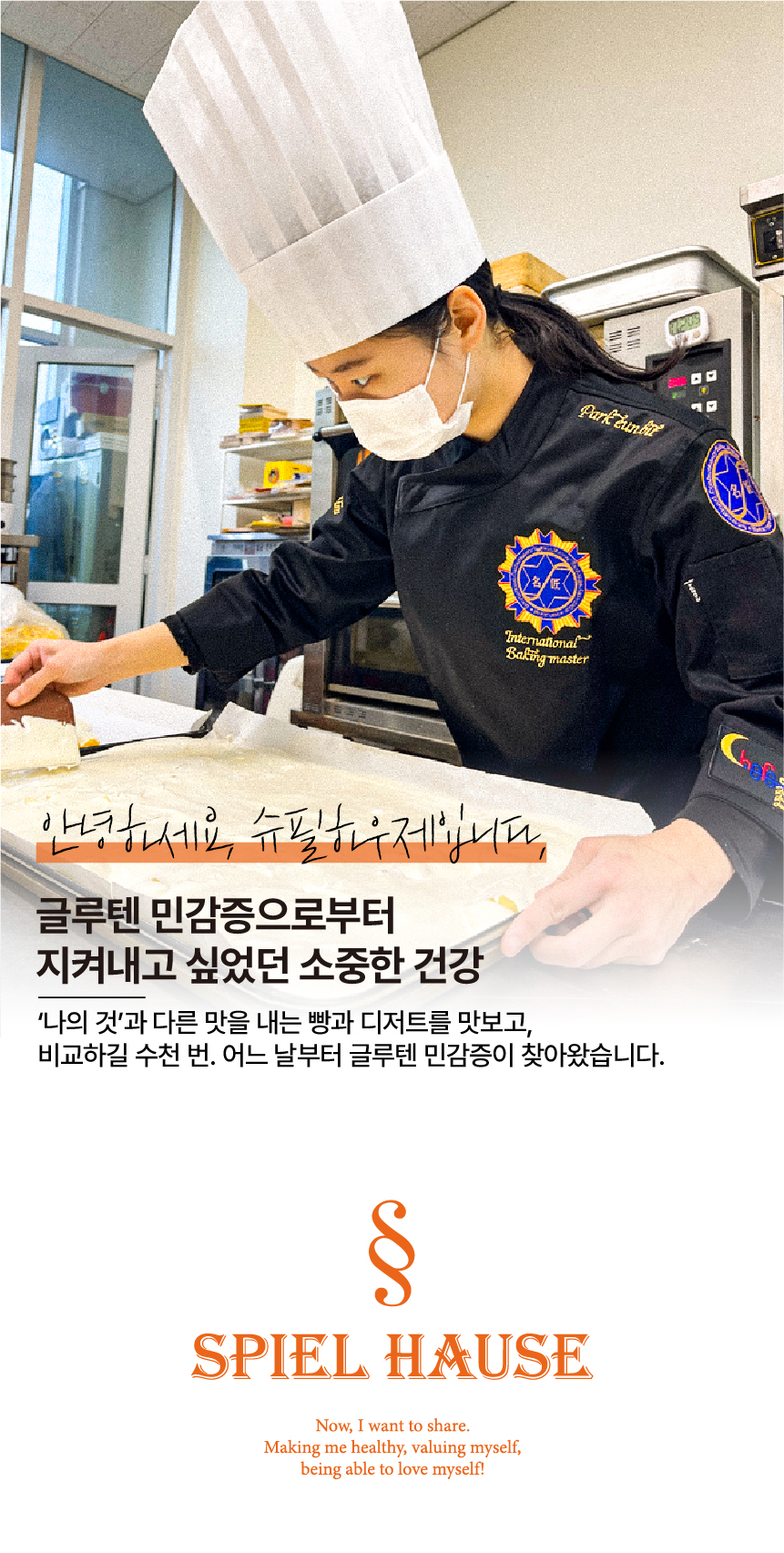 어릴 때부터 재미있는 놀이라고 느끼며 시작한 베이킹은 어느덧 ‘나’를 대변하는 단어가 되었습니다.빵만 먹으면 빨간 두드러기부터 소화불량,그리고 호흡곤란까지가장 소중한 내 자신을 비롯해, 저와 같은 증상을 겪고 계신 분들이믿고 먹을 수 있는 빵과 디저트를 만들어보자는 생각이슈필하우제의 출발이 되었습니다.