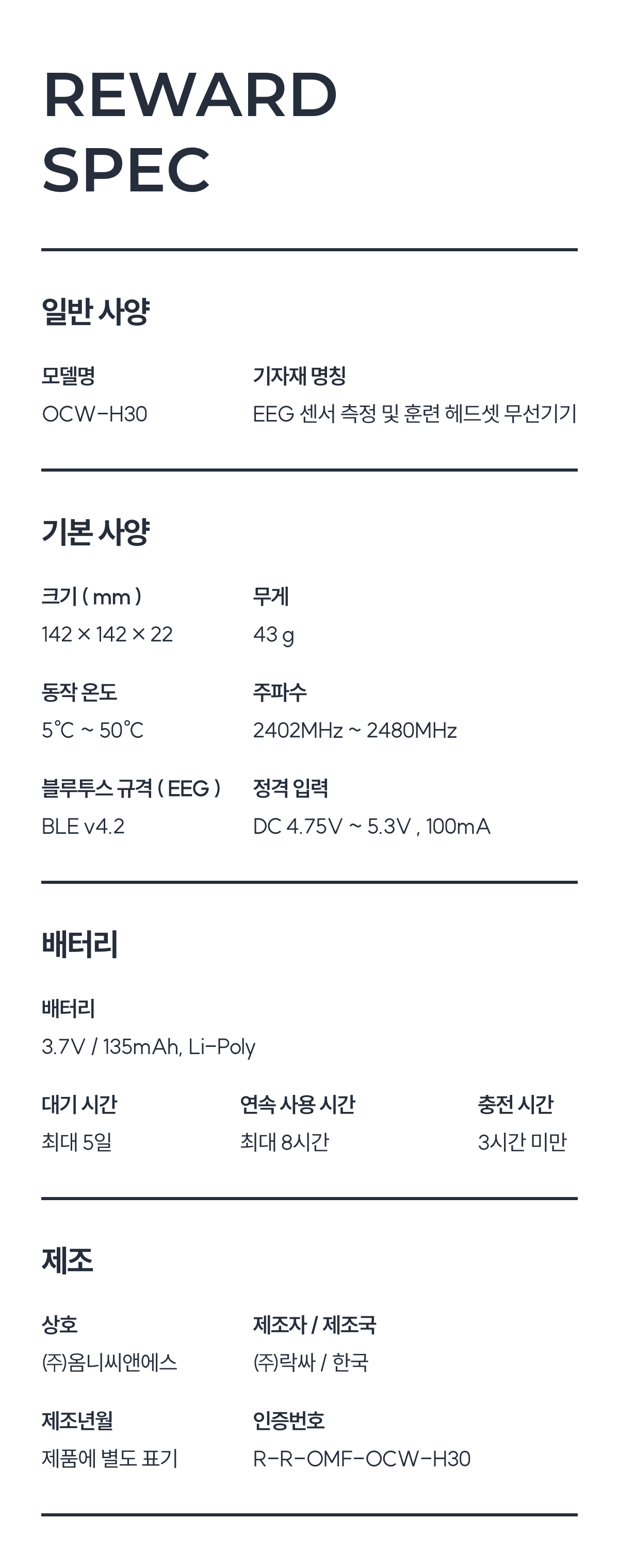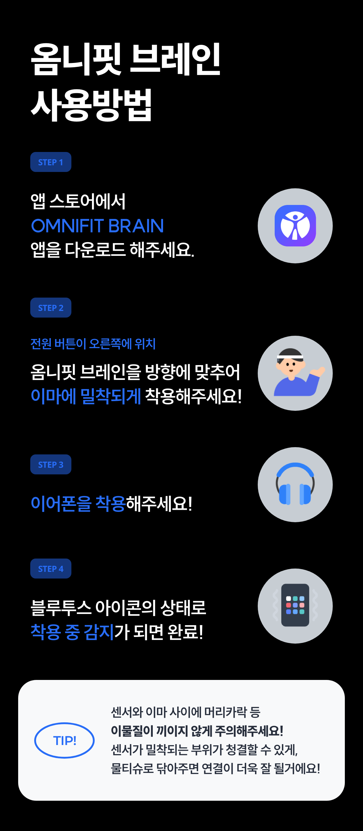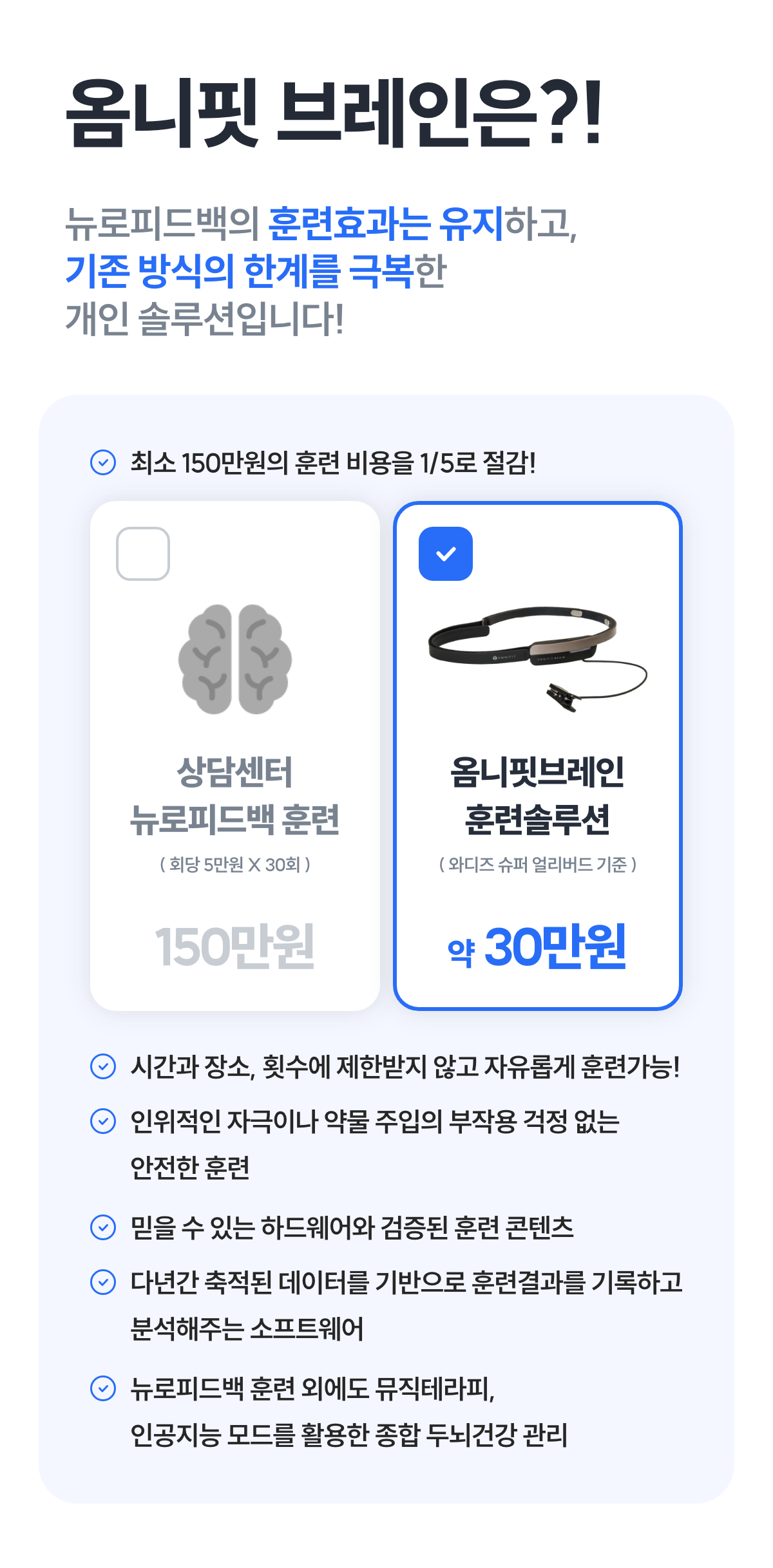 2018년 옴니핏 브레인을 출시하여, 상담센터, 명상센터, 병 · 의원 등을 통해 효과성을 검증하였고, 2024년 제품의 경량화, 스트랩 개선 등을 통해 착용성을 향상시킨 개인용 훈련 제품을 출시하게 되었습니다.