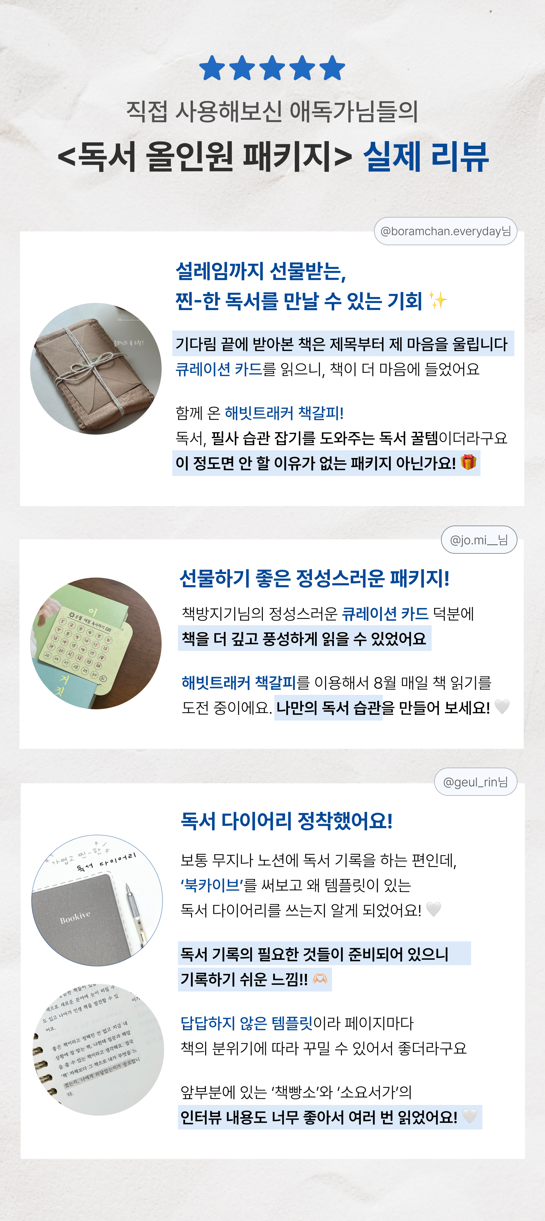 *종이 재질이라는 특성 상 책 및 독서 다이어리 인쇄 면의