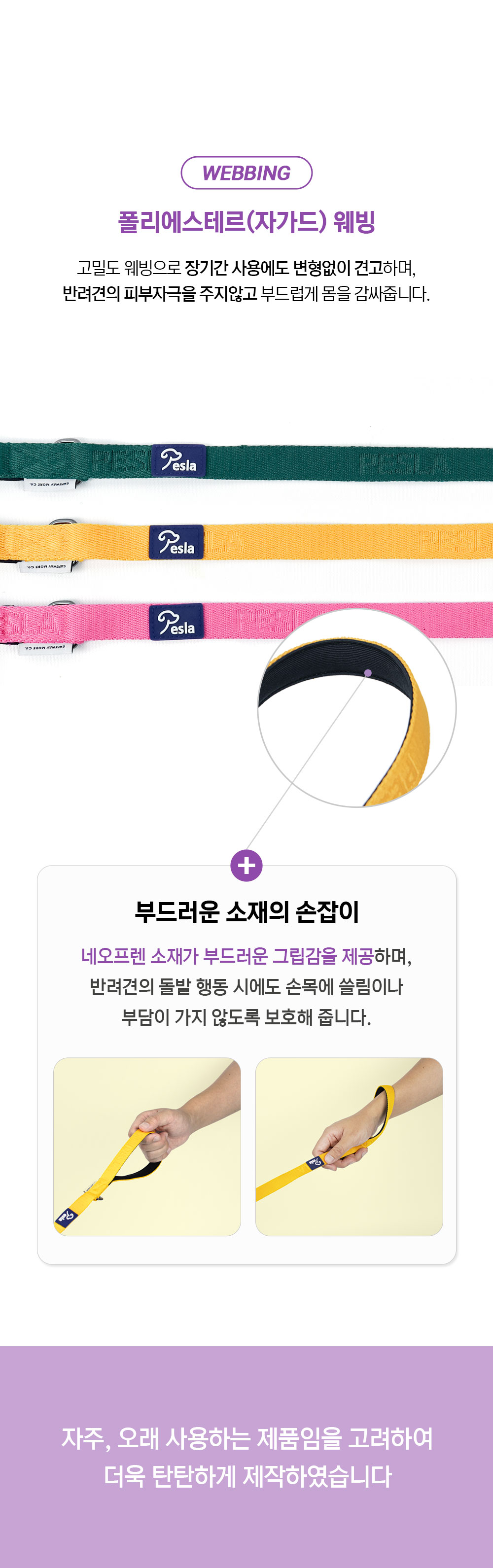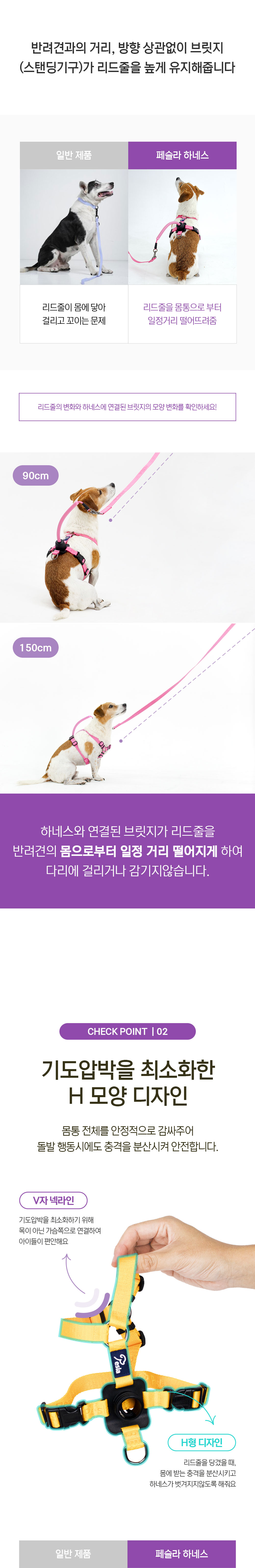 개발을 시작하게 된 계기는 직접 반려견과 산책을 하면서 느꼈던 불편함에서 비롯되었습니다. 일반적인 하네스는 산책 중 줄이 꼬이거나 반려견의 움직임이 제한되는 경우가 많았습니다. 이를 해결하고자, 수많은 테스트와 디자인 개선을 거쳐 줄 꼬임을 방지하는 특허 기술을 담은 하네스를 완성할 수 있었습니다.