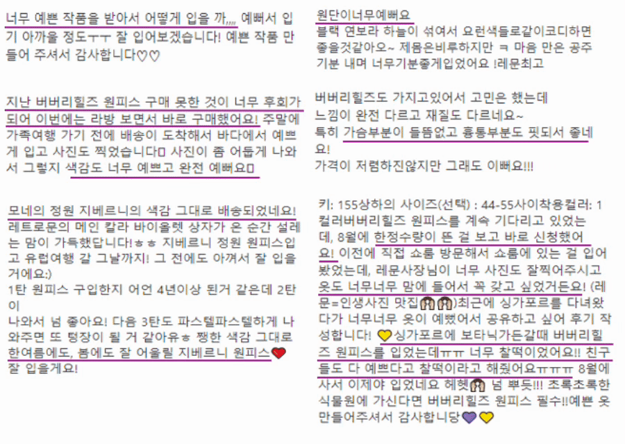 (자사 홈페이지와 인스타그램DM 실제 후기들 입니다)