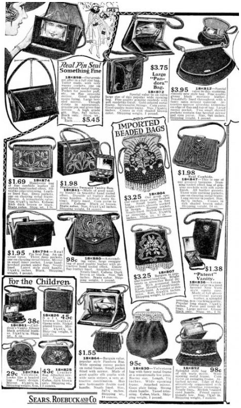당시 미니백은 플랫한 모양부터 원통형, 프레임을 넣은 클러치형 등 콤팩트한 사이즈로 휴대용 파우치 용도의 백이였습니다. 화려한 프레임에 실크나 비즈 장식이 더해져 화려한 형태가 많았습니다