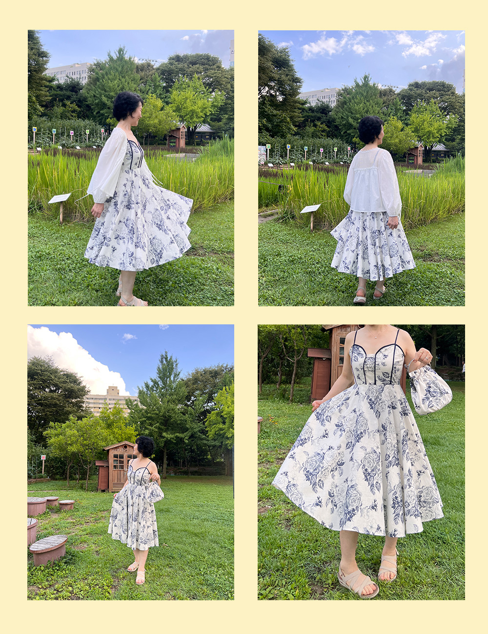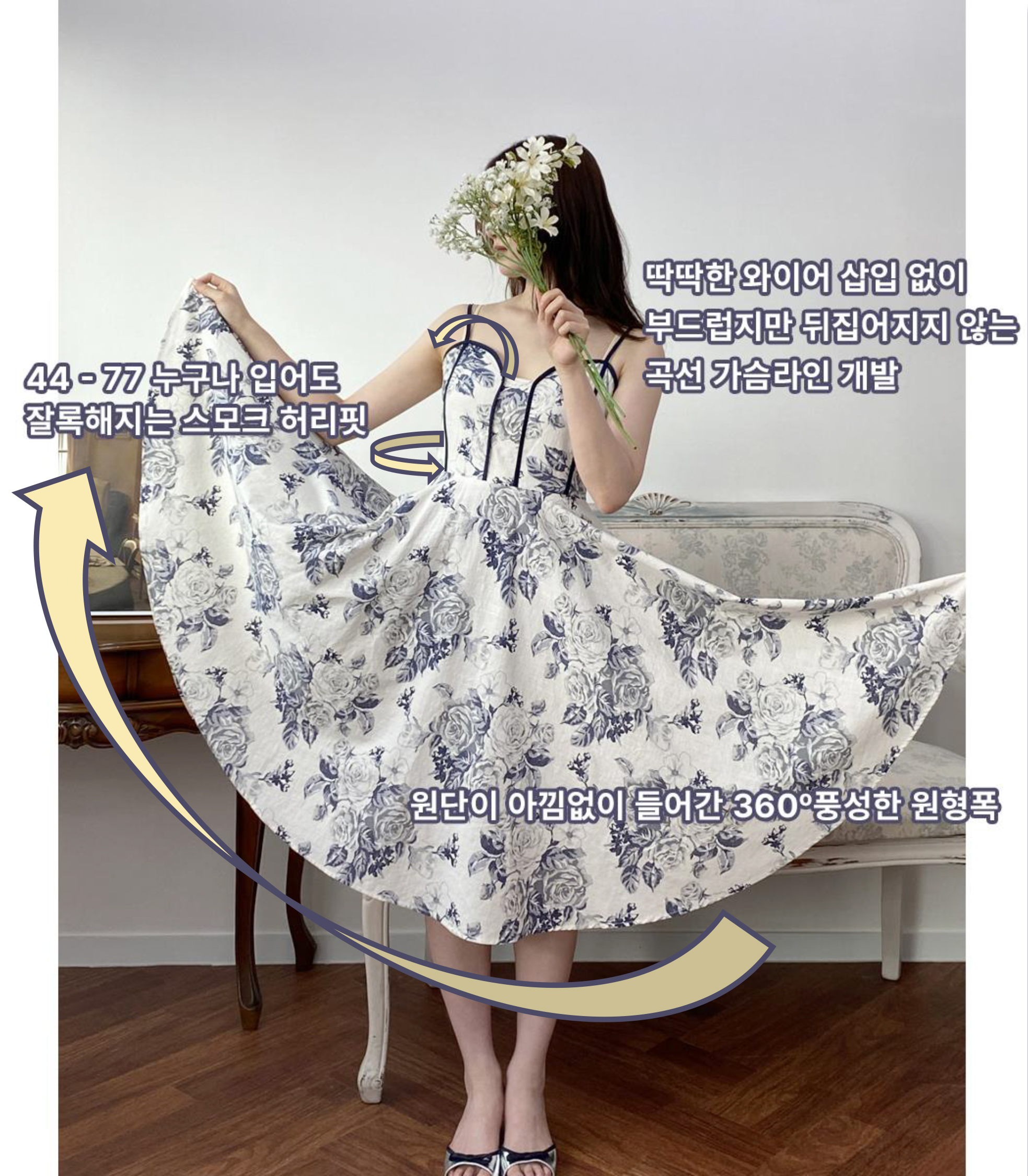 원단을 아낌없이 사용하여 360도 풍성한 원형 폭 완성 !