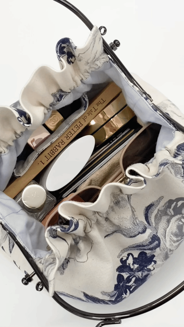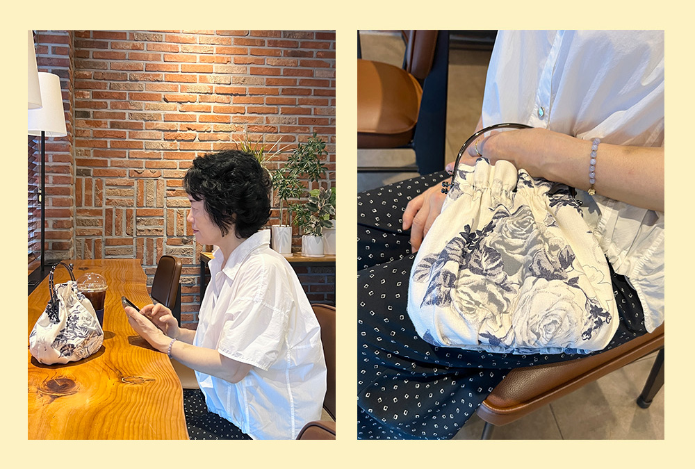 꽃의 위치가 가방의 정 중앙에 오도록 한 장, 한 장, 원단을 손 재단해 작업하지만, 미세하게 디테일의 위치가 조금씩 다르니 참고 부탁드립니다.