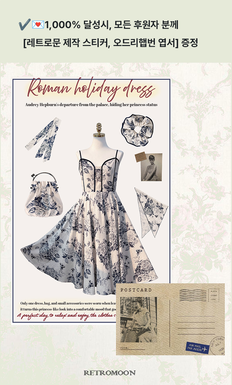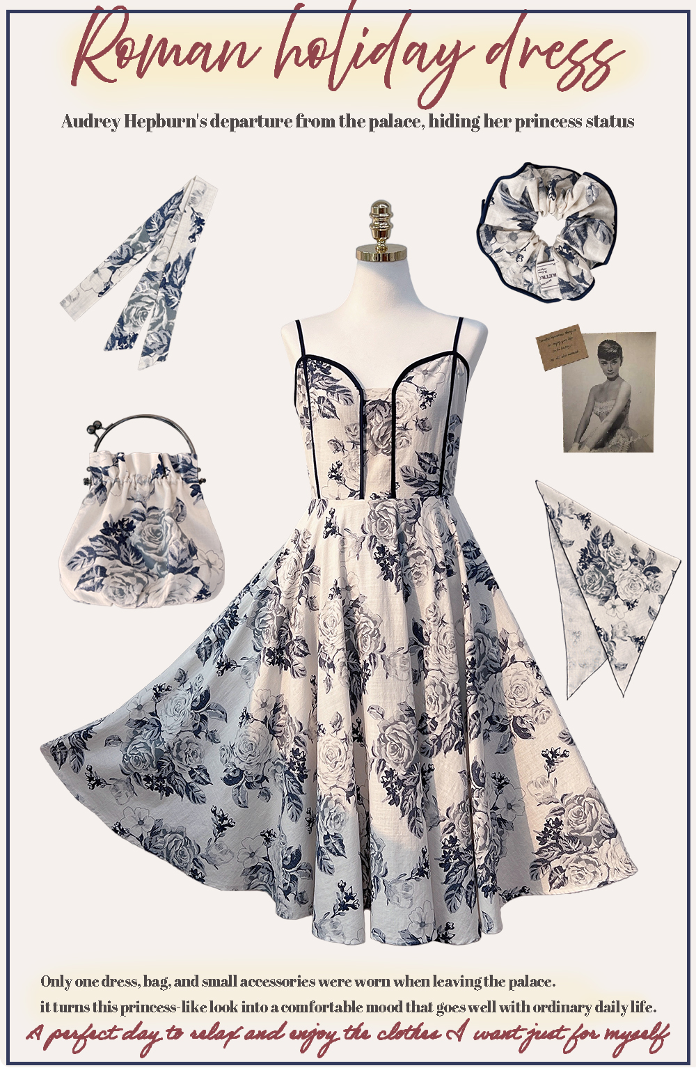 로마의휴일,공주의 신분을 감춘 짜릿한 일탈SET"오드리헵번 원피스+가방"