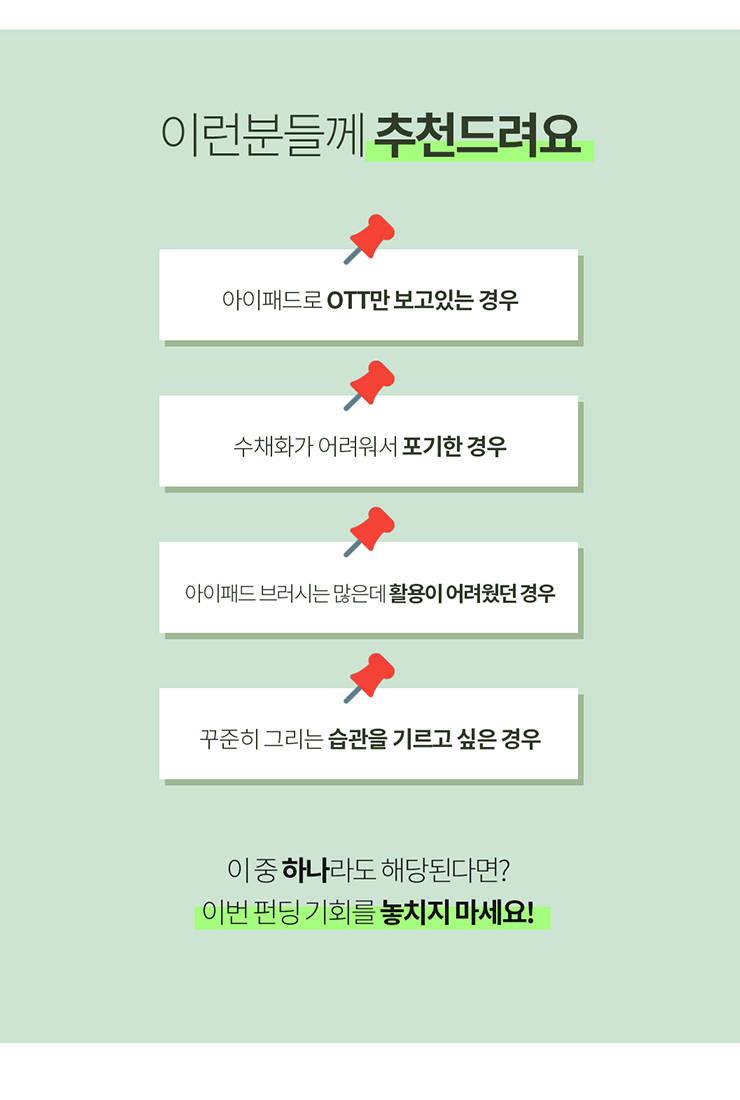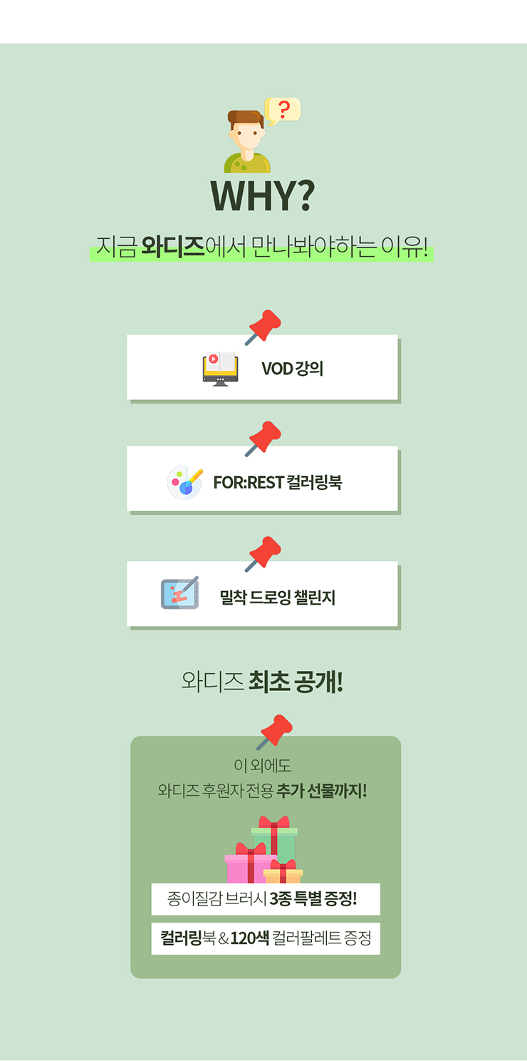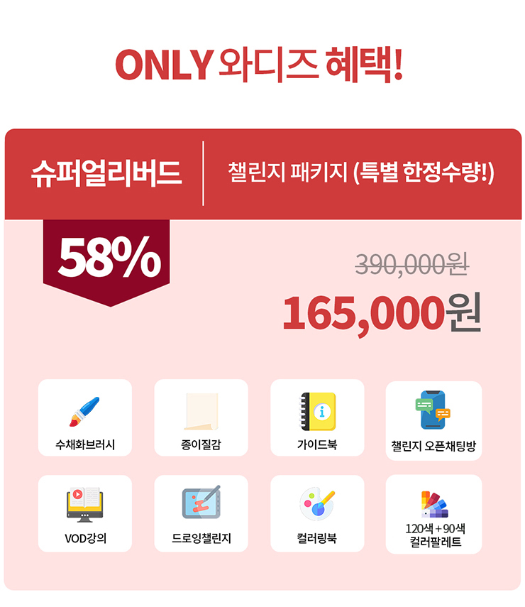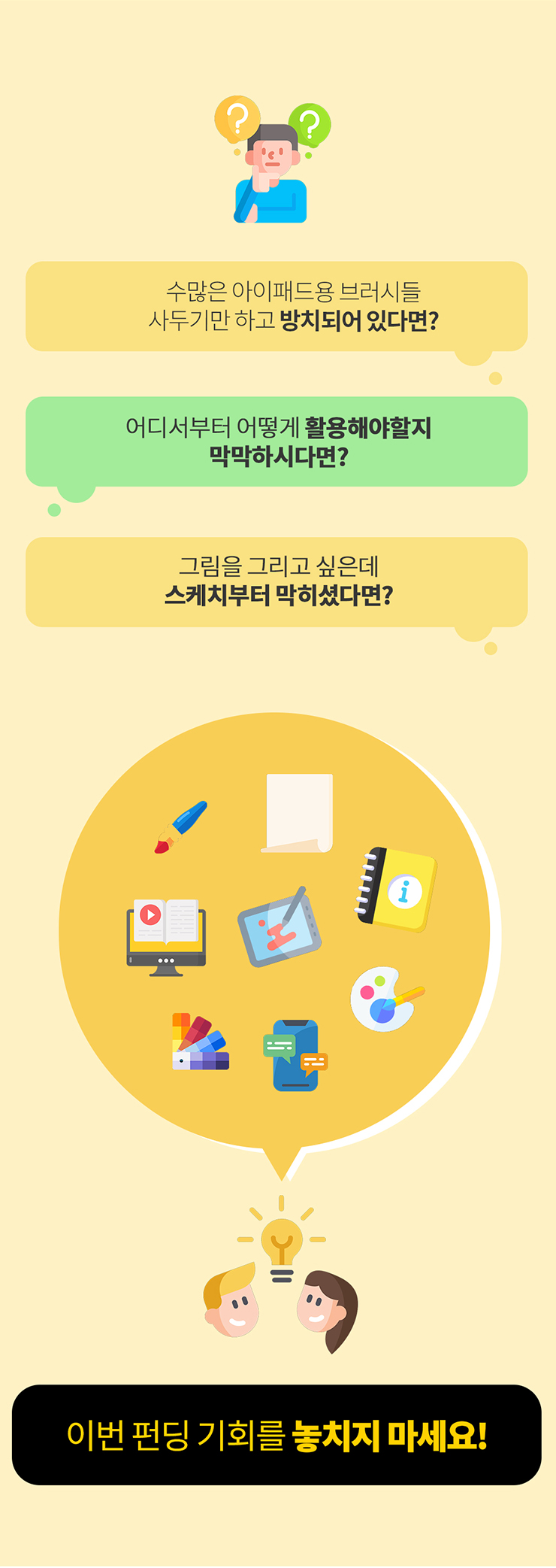 물감보다 더 진짜같은 아이패드 수채화&종이질감 세트! VOD강의와 1:1피드백이 담긴 챌린지, 그리고 가이드북과 컬러링북까지 와디즈에서 모두 챙겨가세요!