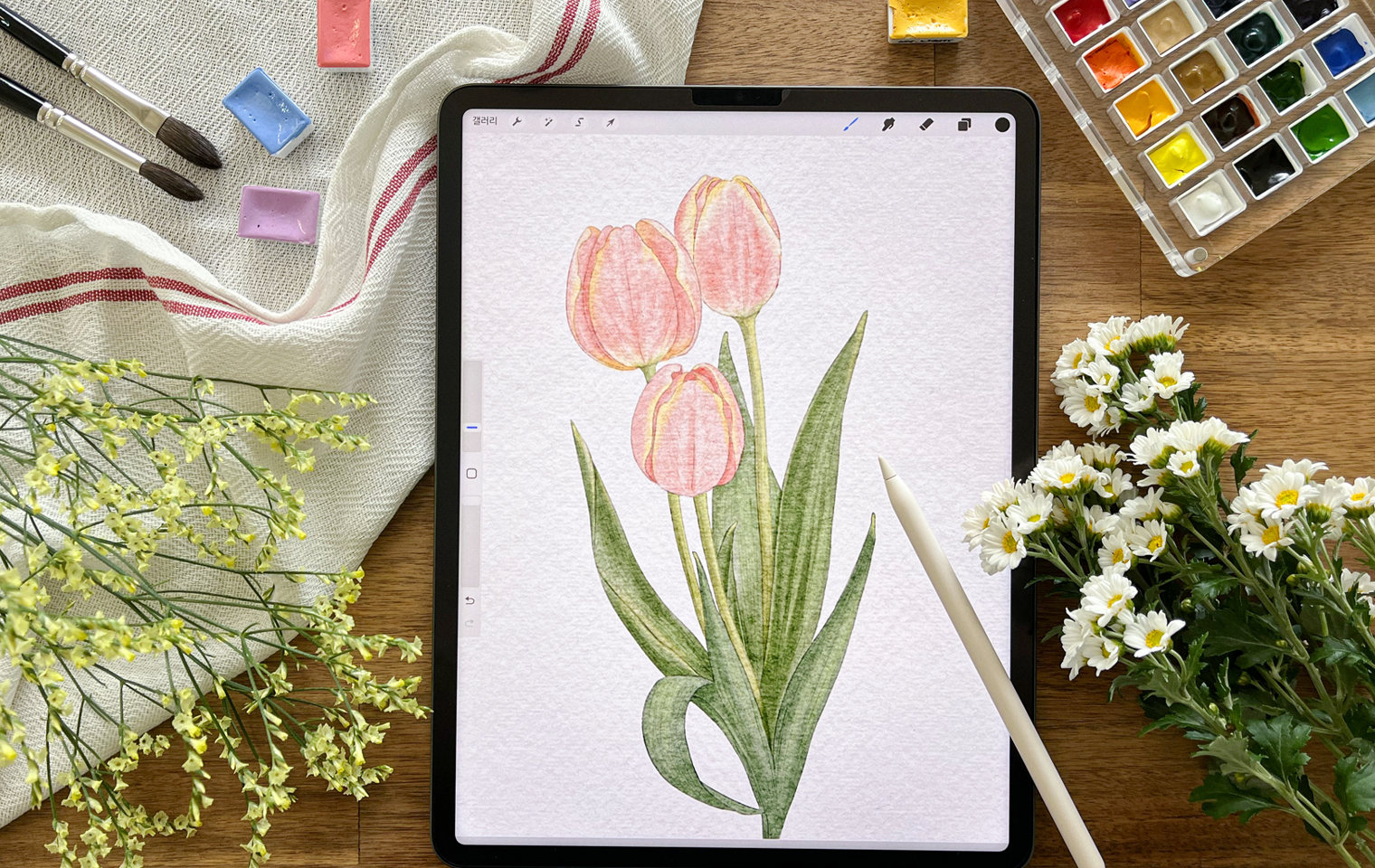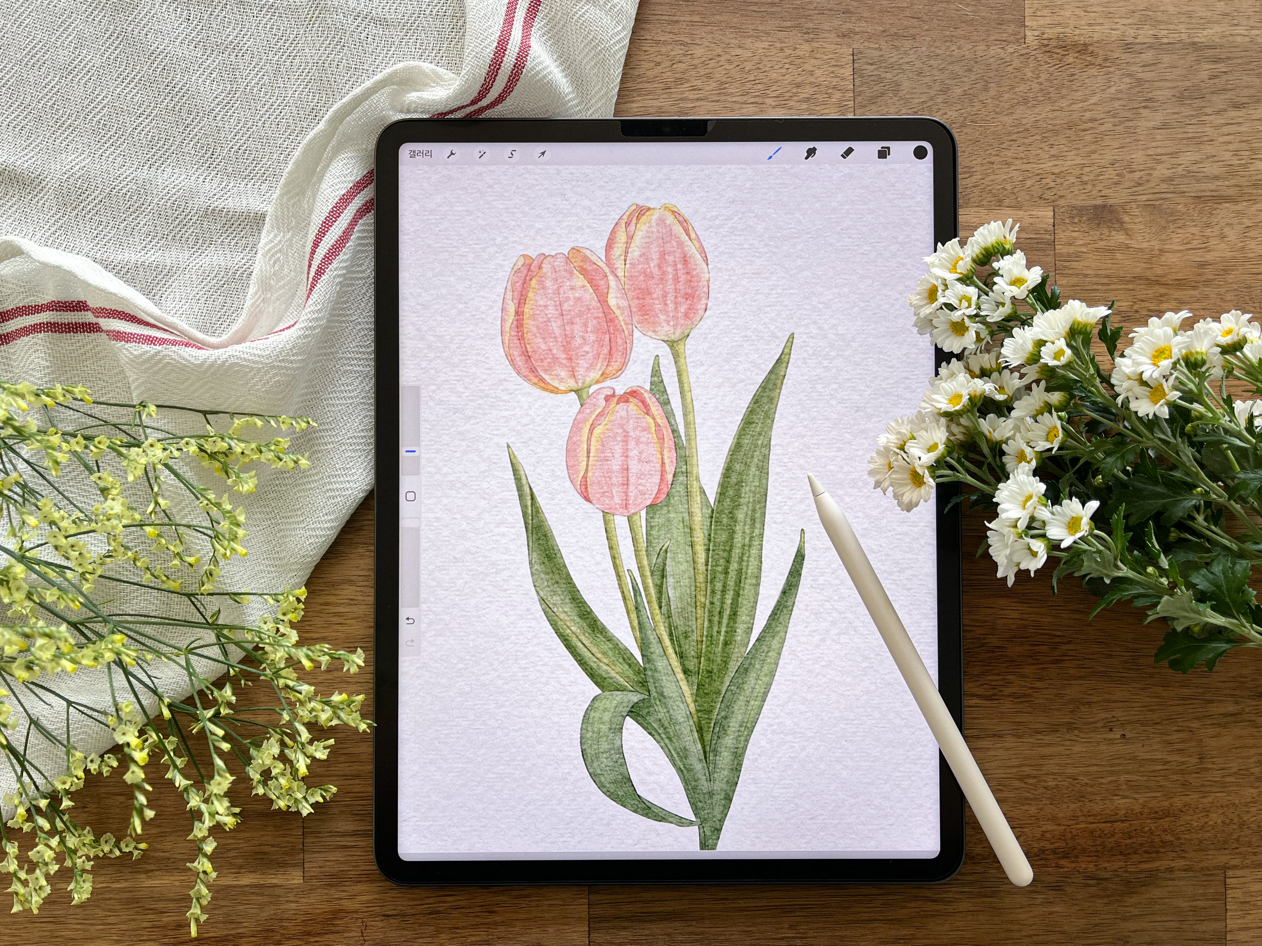 (왼쪽) 아이패드로 그린 튤립 일러스트