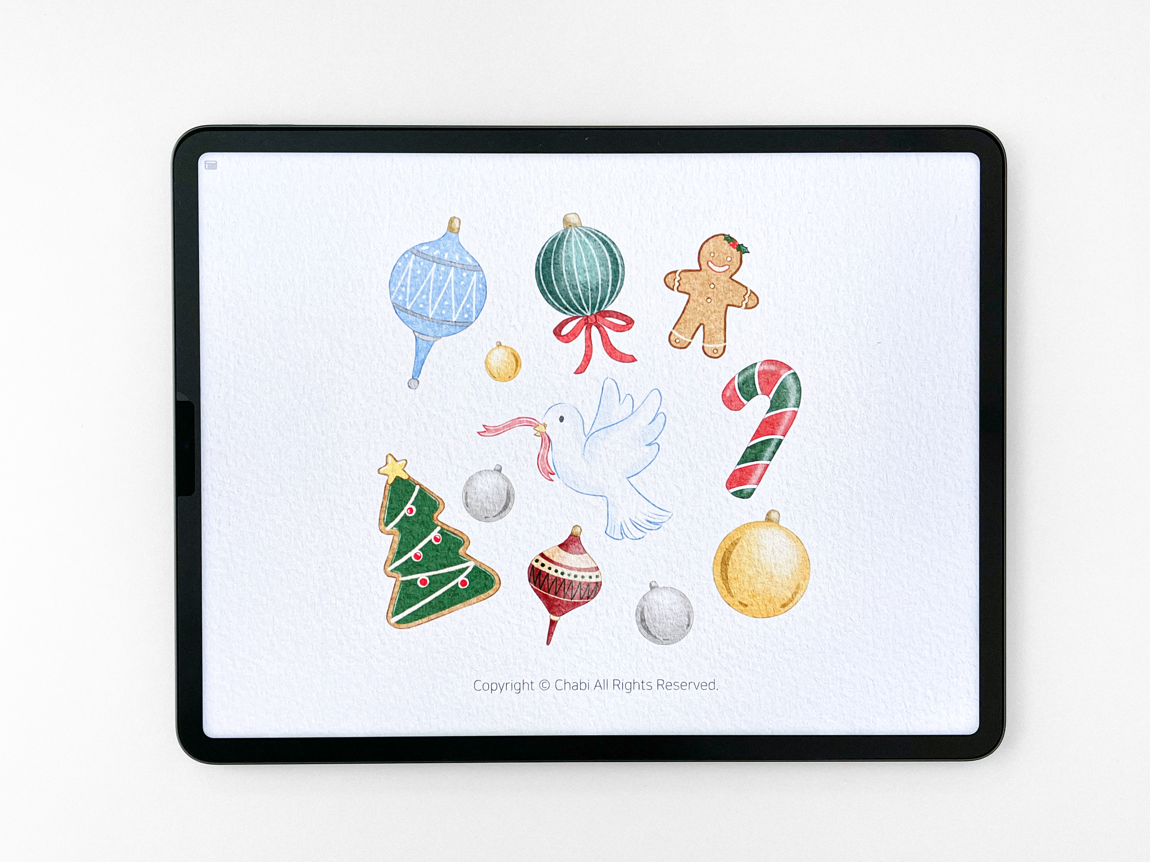 수채화 종이질감 파일을 적용하여 그린 크리스마스 일러스트