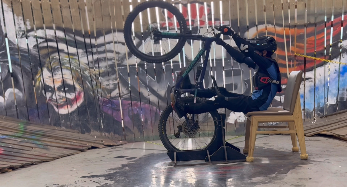 MTB초보자라면 자전거 뒤에 식탁의자를 두고 연습하면 더 안전합니다.