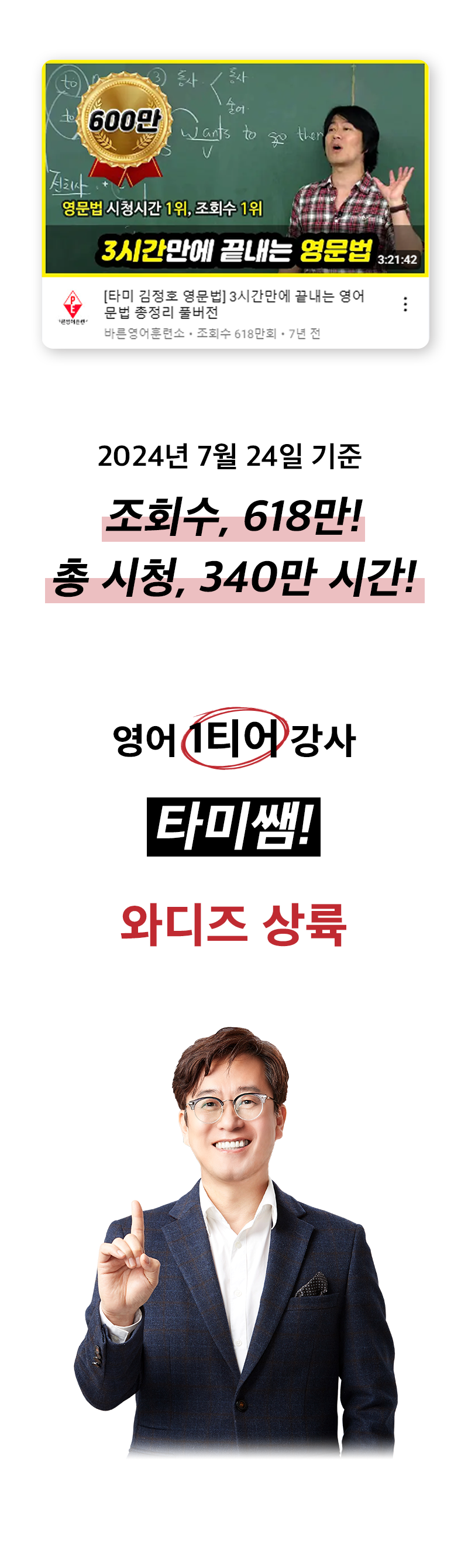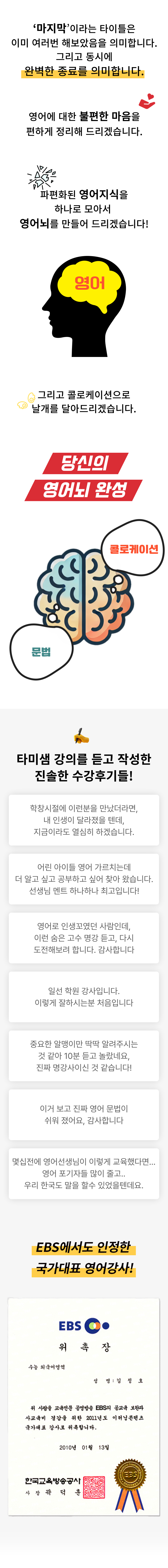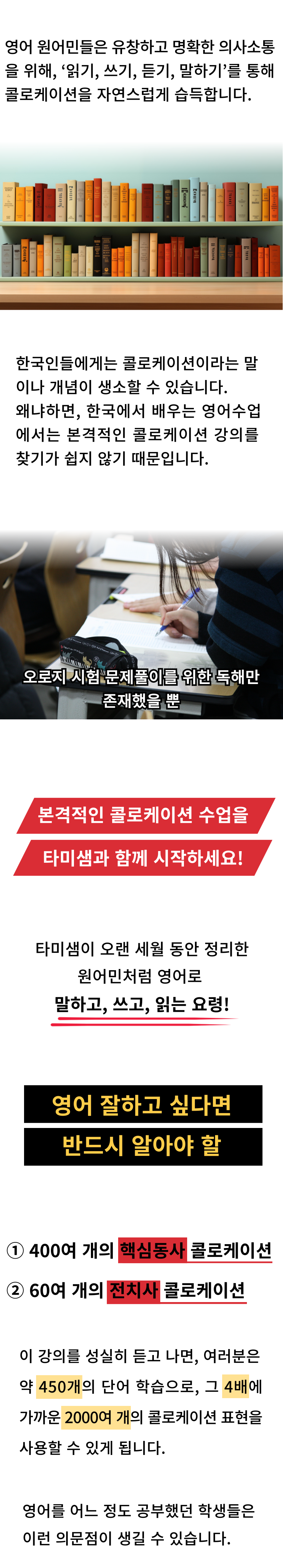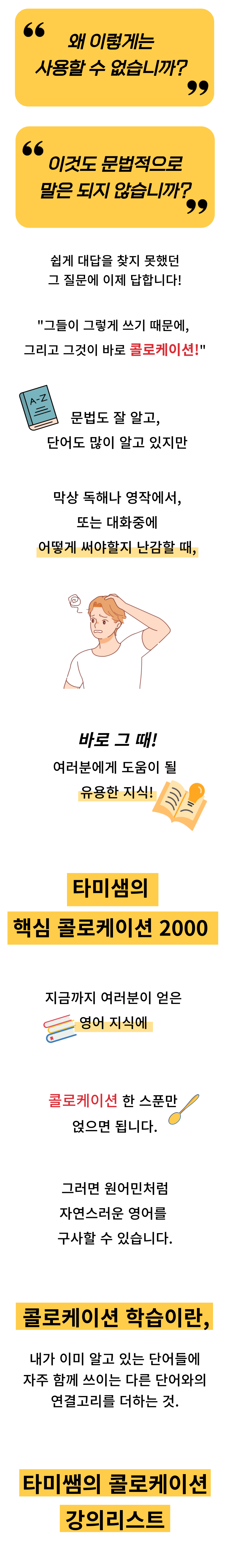 타미쌤이 준비한 원어민들의 영어학습법(콜로케이션학습)과, 영문법 총정리는 인생에 큰 변화를 가져다줄 것입니다. 주저하지 말고 시작하세요, 바로잡기에 아직 늦지 않았습니다.