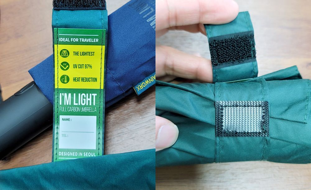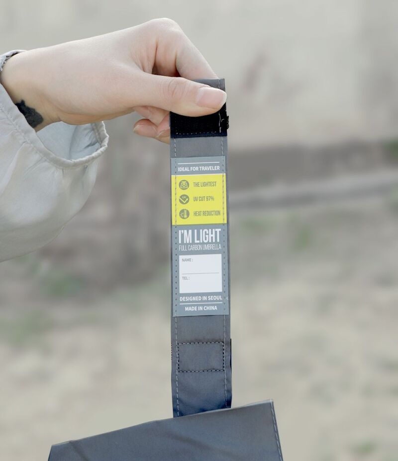 가전에 많이 쓰이는 헤짐이 적은 벨크로와 또한 휴대용 우산은 분실이 잦다는 점에 착안해 우산띠에 네이밍 라벨을 추가하였습니다.