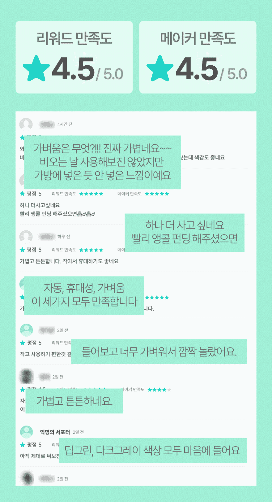 서포터 분들의 소중한 프리오더의 금액은 우산 생산 비용과 금형 디자인 연구개발에 사용됩니다. 감사합니다.