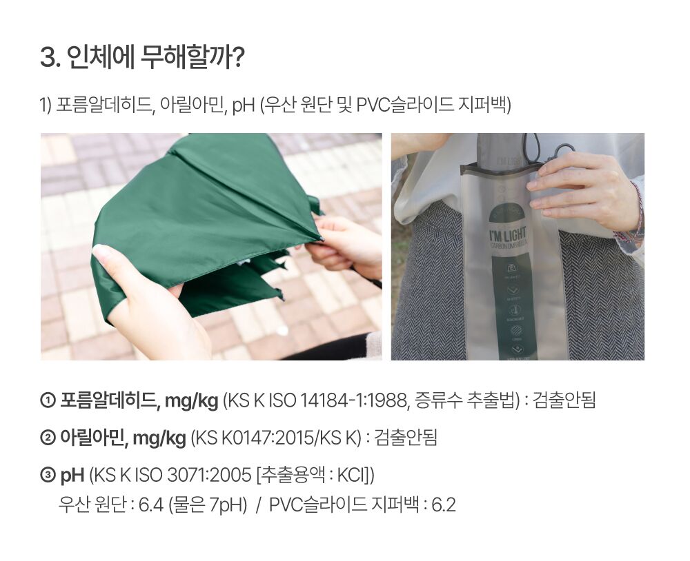 -장마철 폭우나 강수량이 많을 경우 원단이나 재봉선 사이로 물이 흐를 수 있으나 이는 불량이 아닙니다.(이건 모든 우산에 적용되는 유의사항입니다)