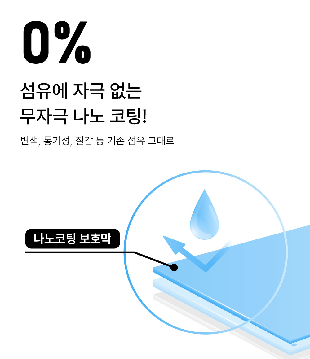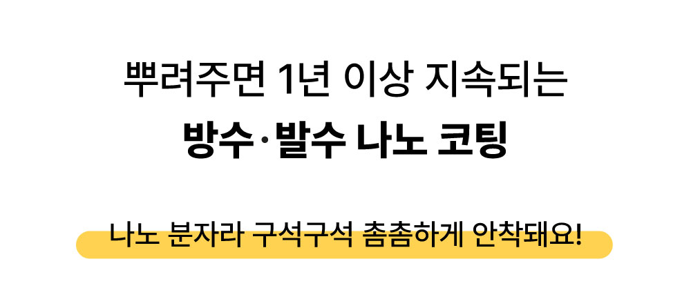 발수·방수력이 약해졌을 때 한번 뿌려주면 투명한 코팅막이 형성되어 다시 복원됩니다.