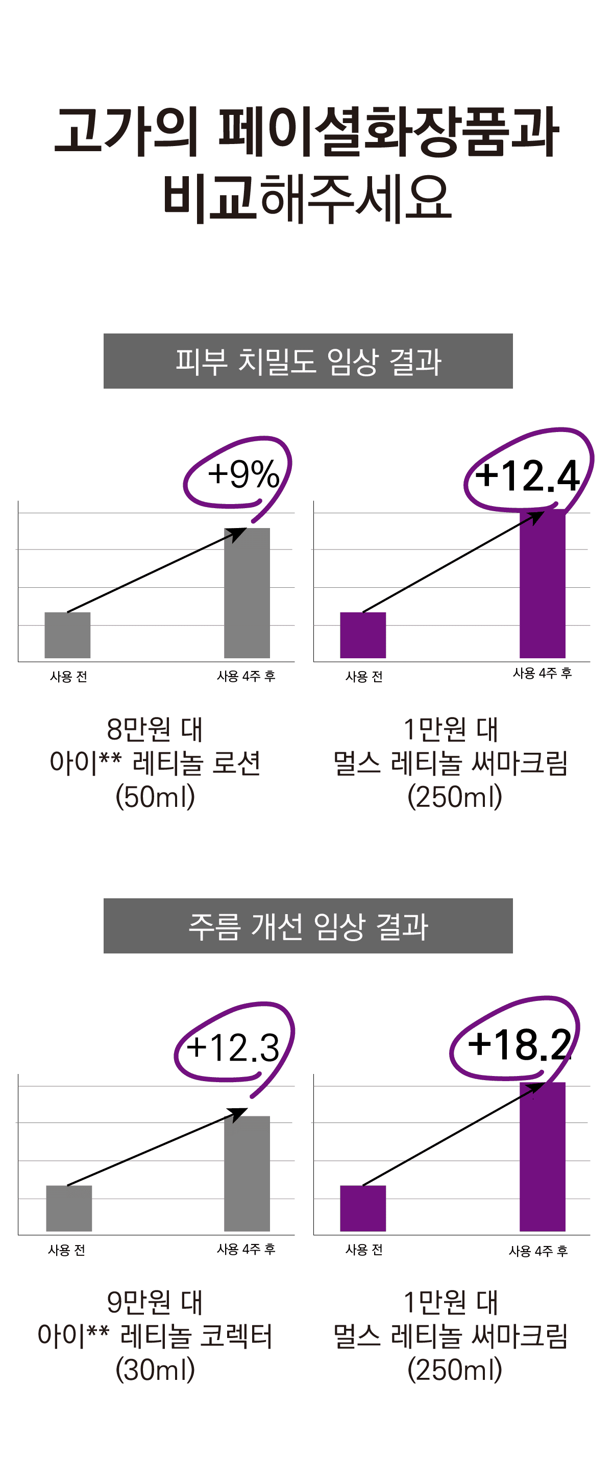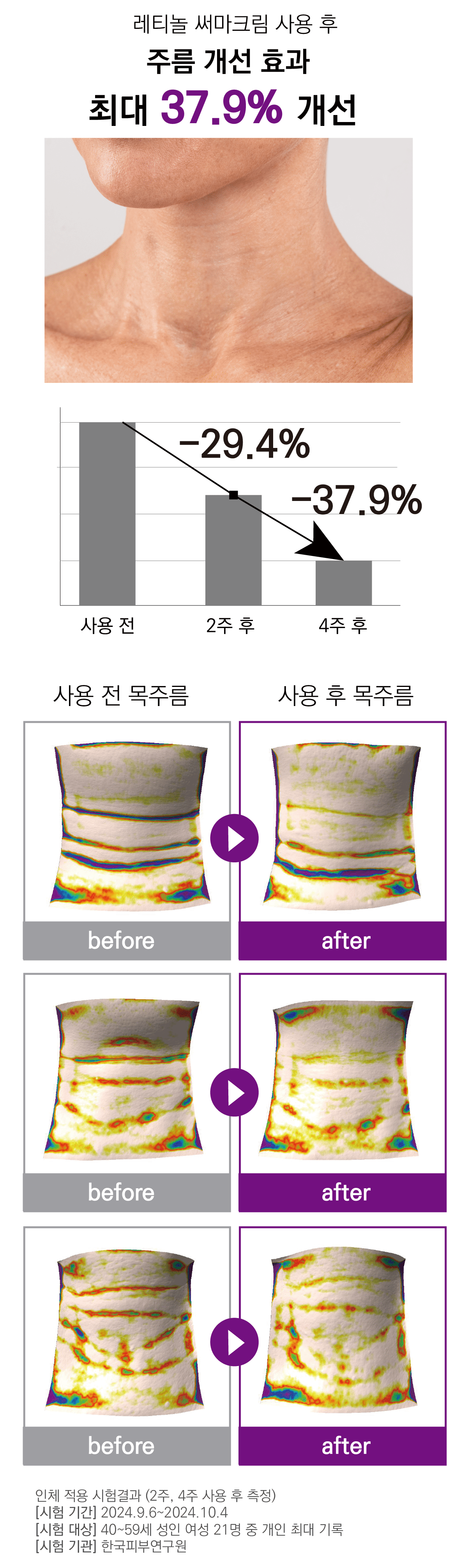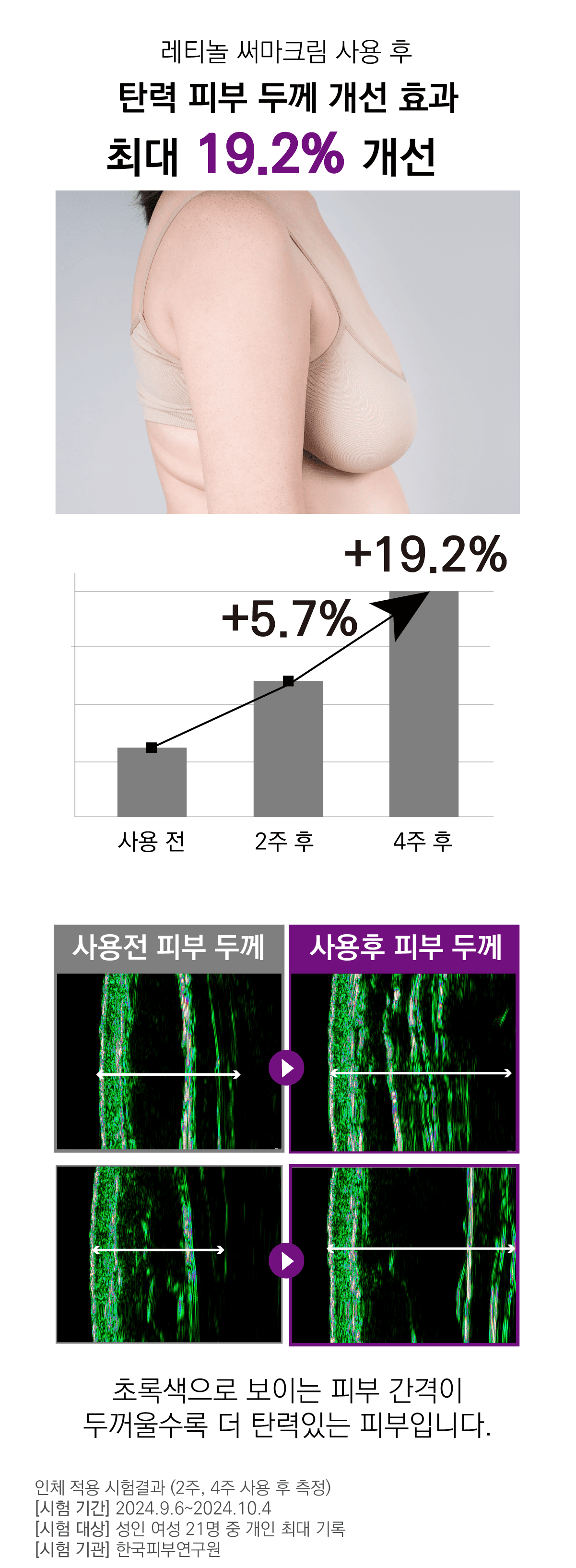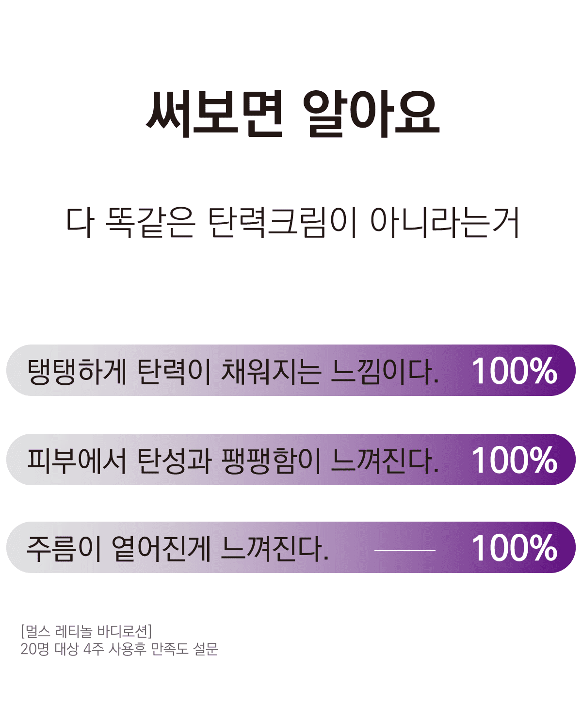 한 달간 꾸준히 발라보면서 눈에 띄게 달라지는 제 몸을 보면서 제품에 대한 확신을 얻었어요. 저 같은 고민을 하셨거나 미리 예방하려는 분들께 분명히 도움이 될거예요. 저 믿고 딱 4주만 한 쪽만 발라보시고 비교해 보세요. 자신 있습니다.