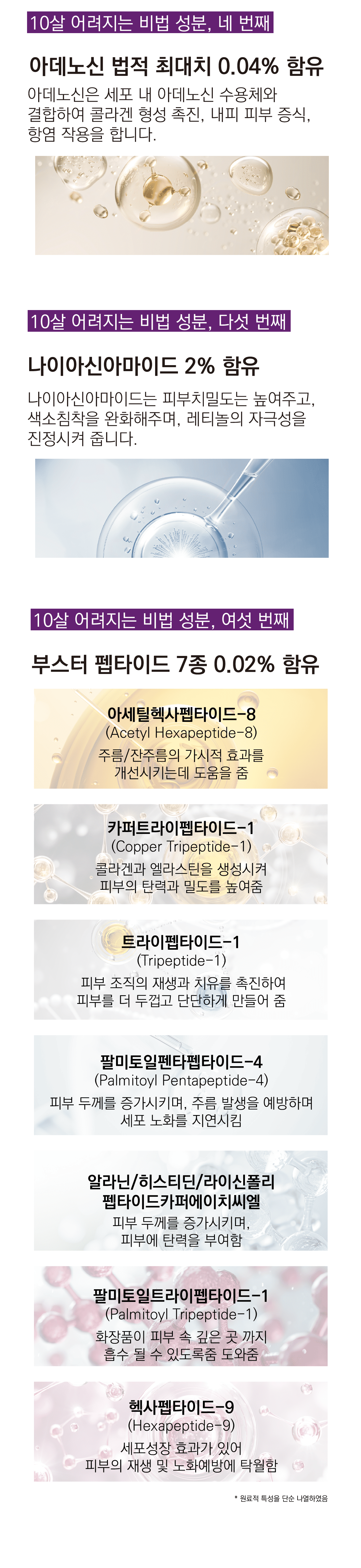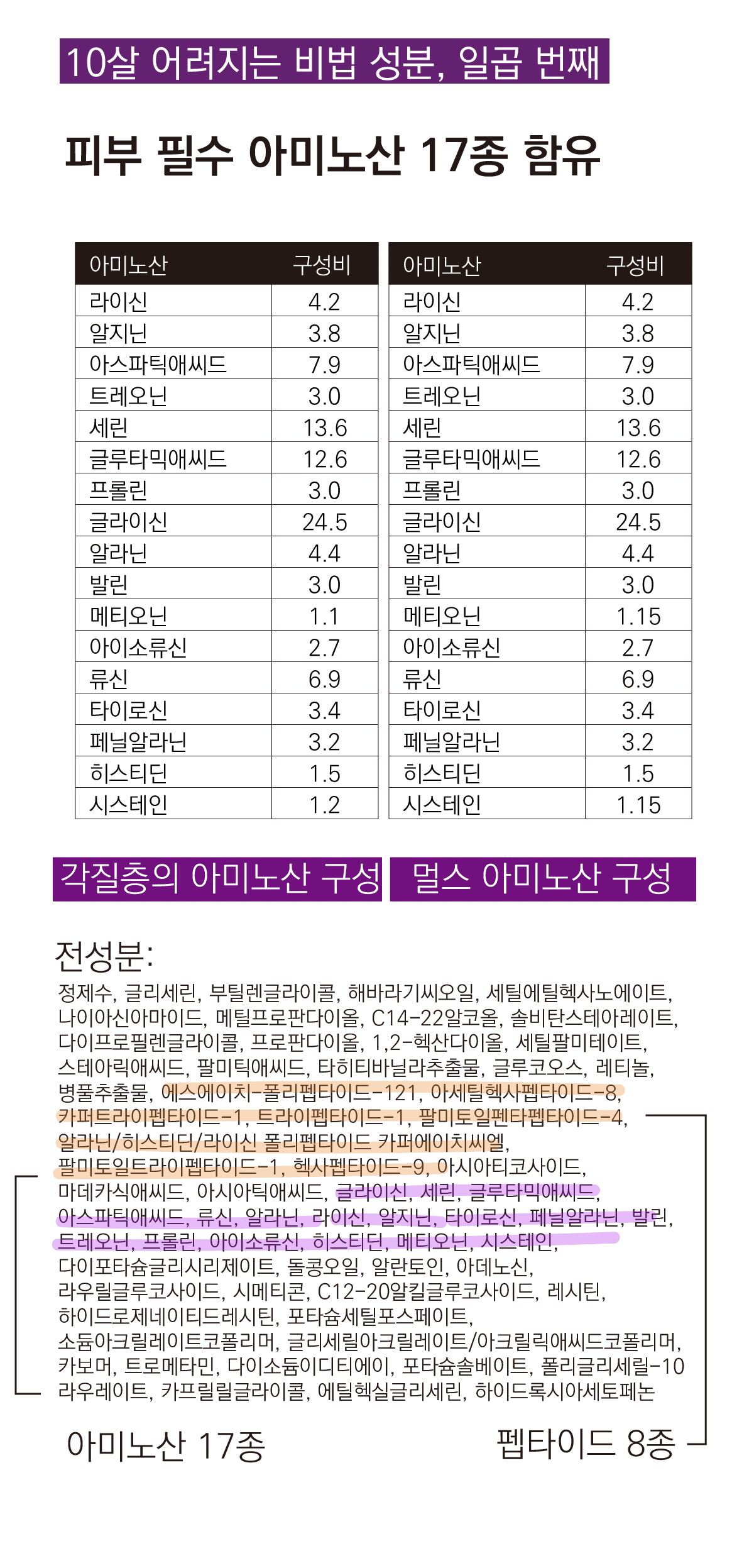 또한 아미노산은 천연보습인자(NMF)의 주성분으로, 피부를 촉촉하고 윤기를 줘 주름이 생기지 않게 도와줍니다.