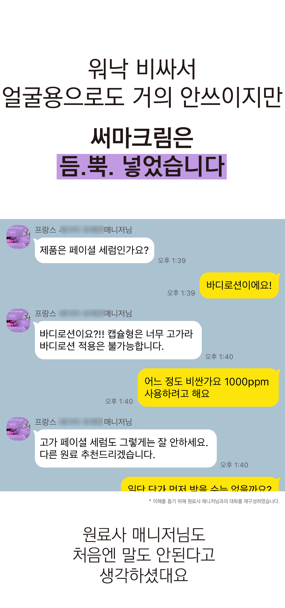 실제로 화장품에 썼을때 그 놀라운 효과가 구현되긴 어려웠어요.