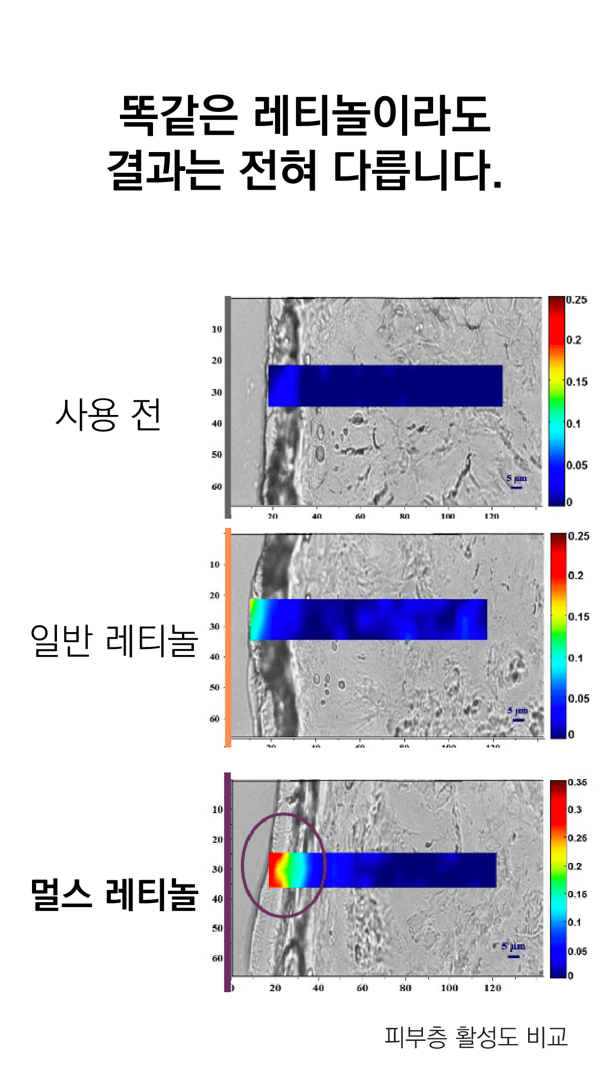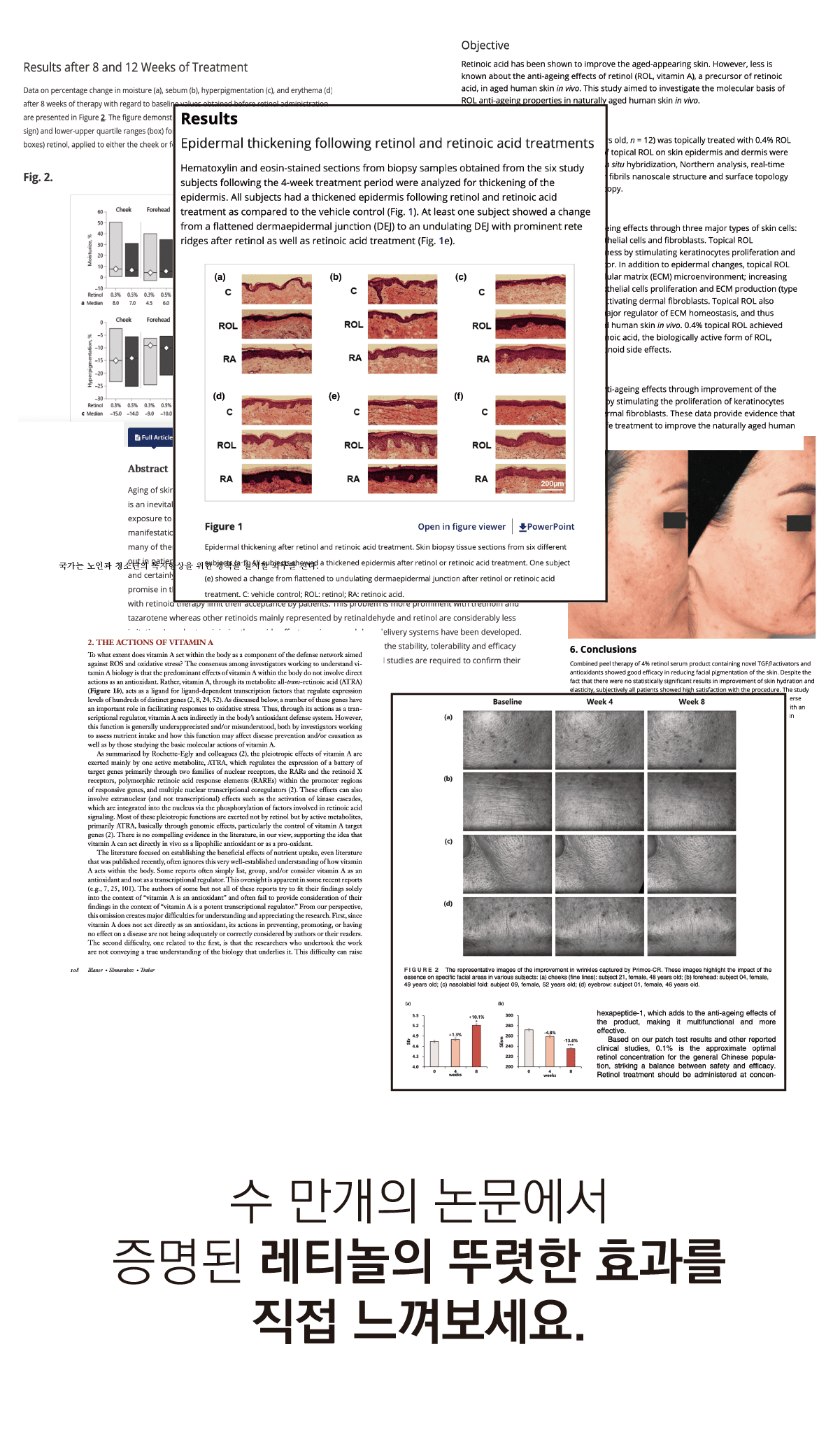 레티놀의 효과로 유명한 임상 사진이에요.