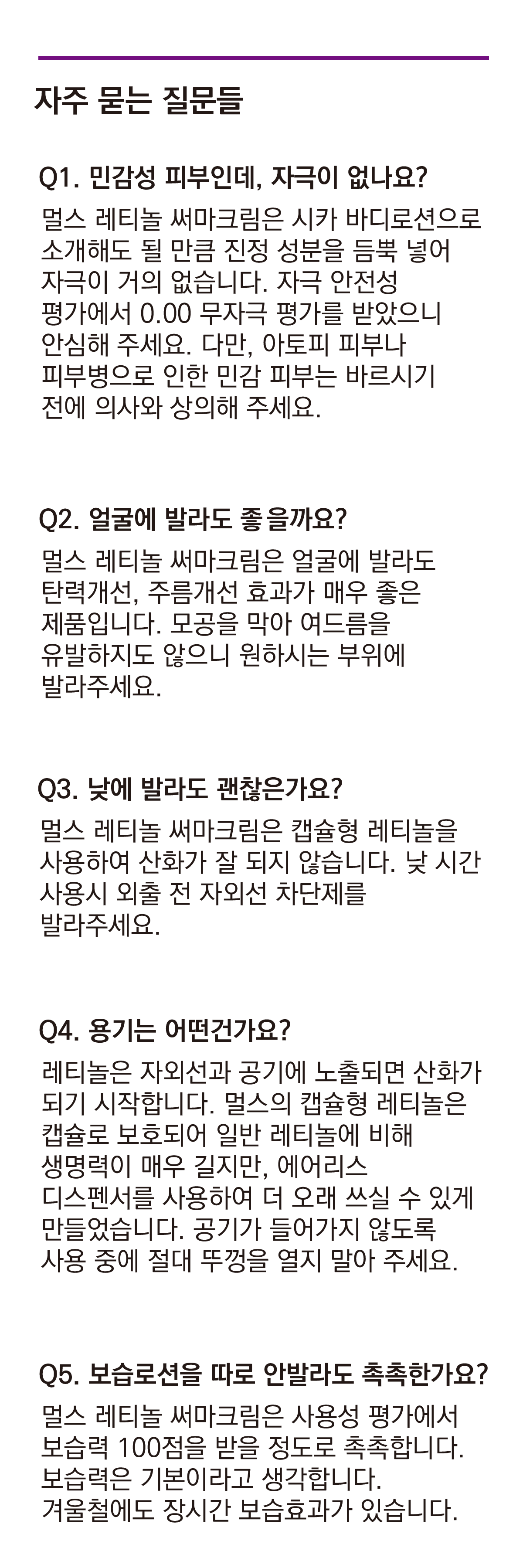 멀스의 레티놀은 캡슐로 보호하여