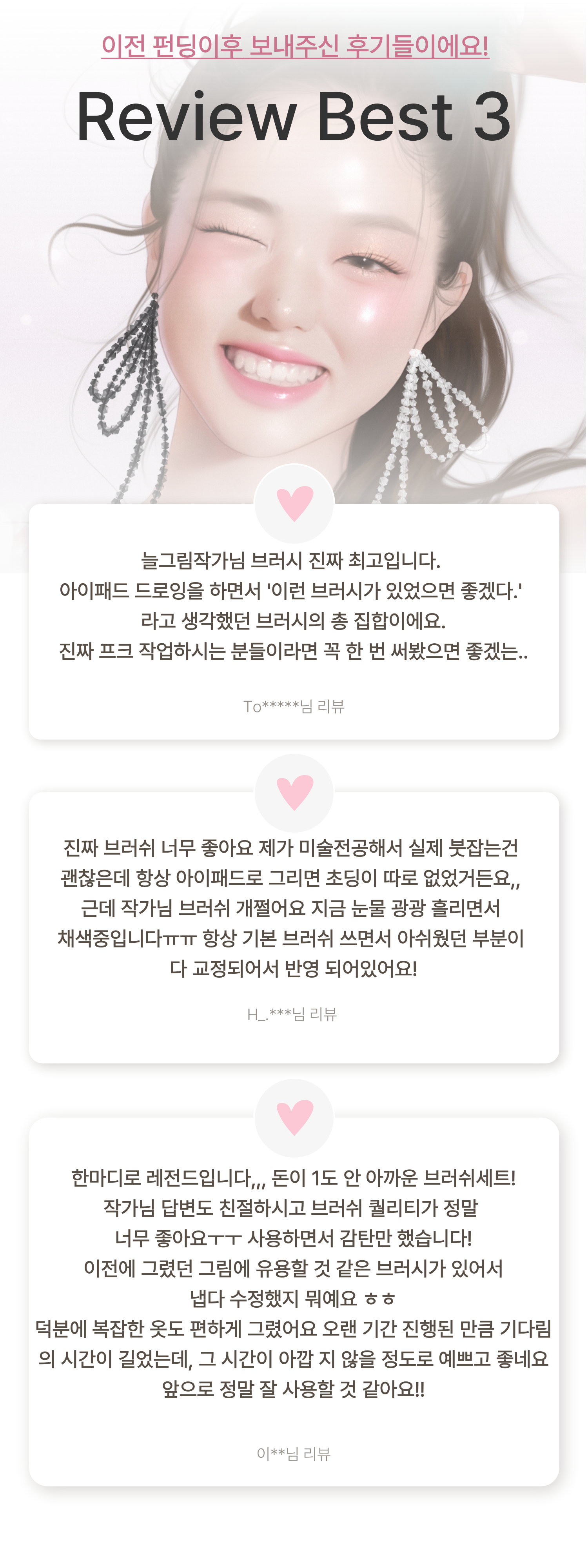 후원자분들이 남겨주신 피드백과 리뷰를 보며