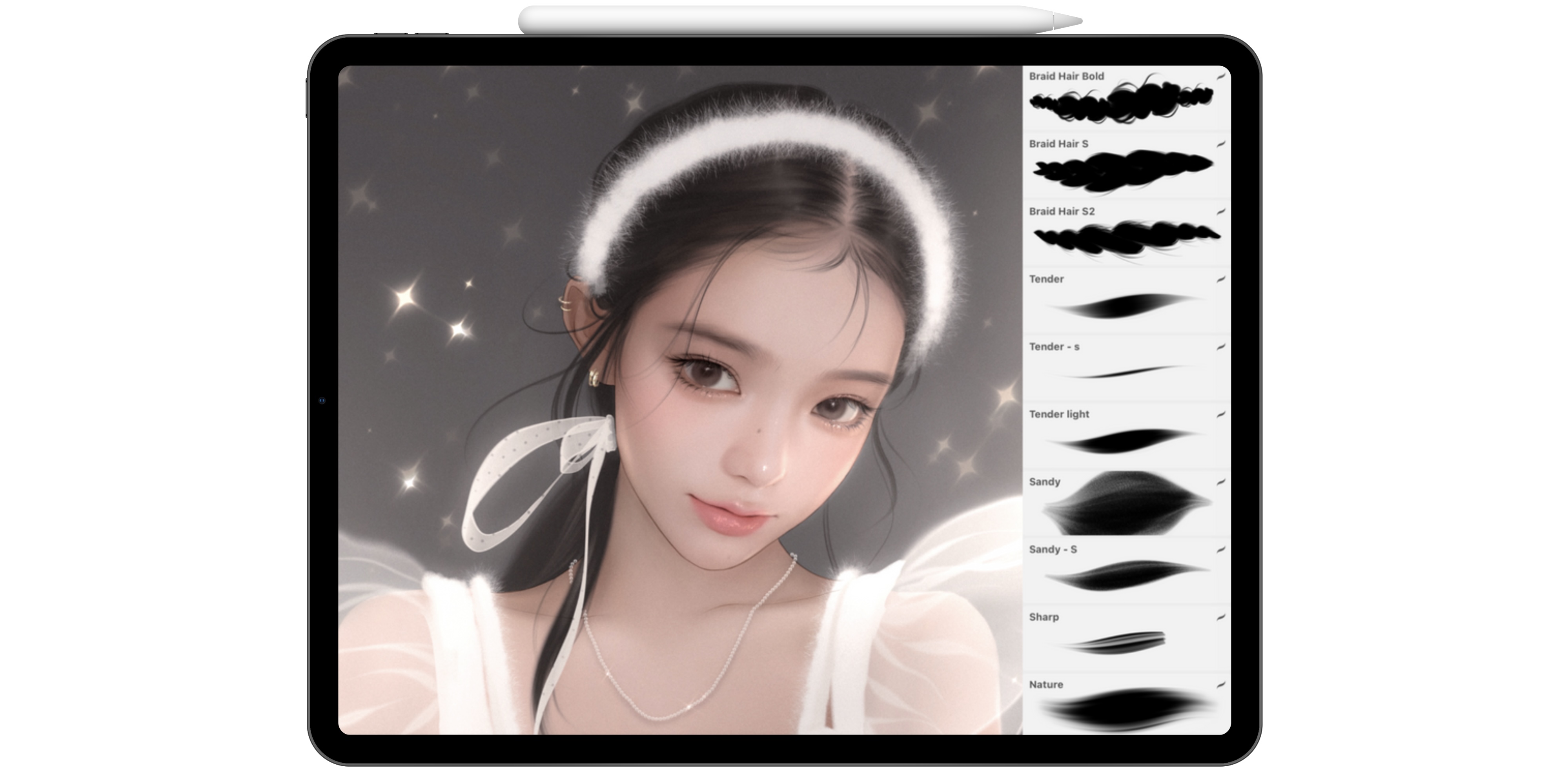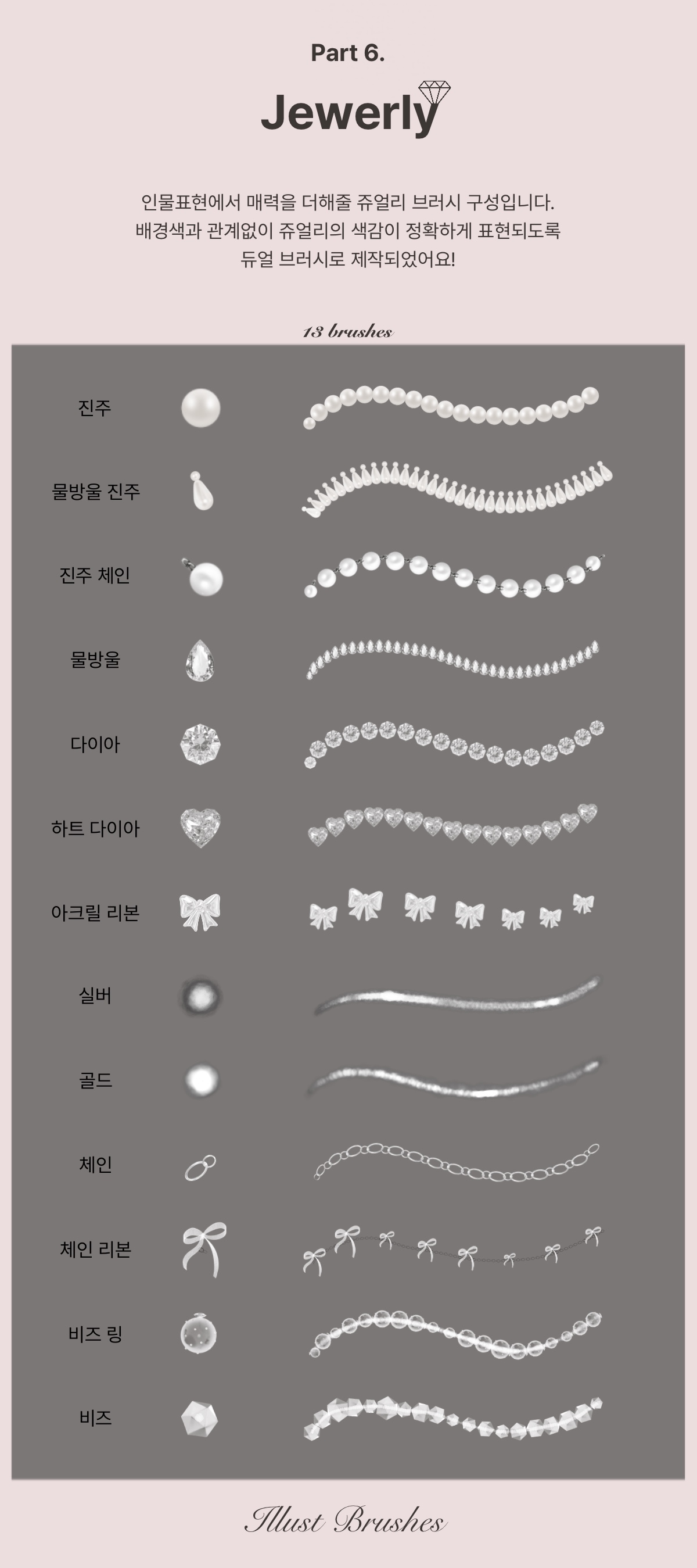 다양한 쥬얼리 브러시로 그림에 디테일과 재미를 더해보세요:)