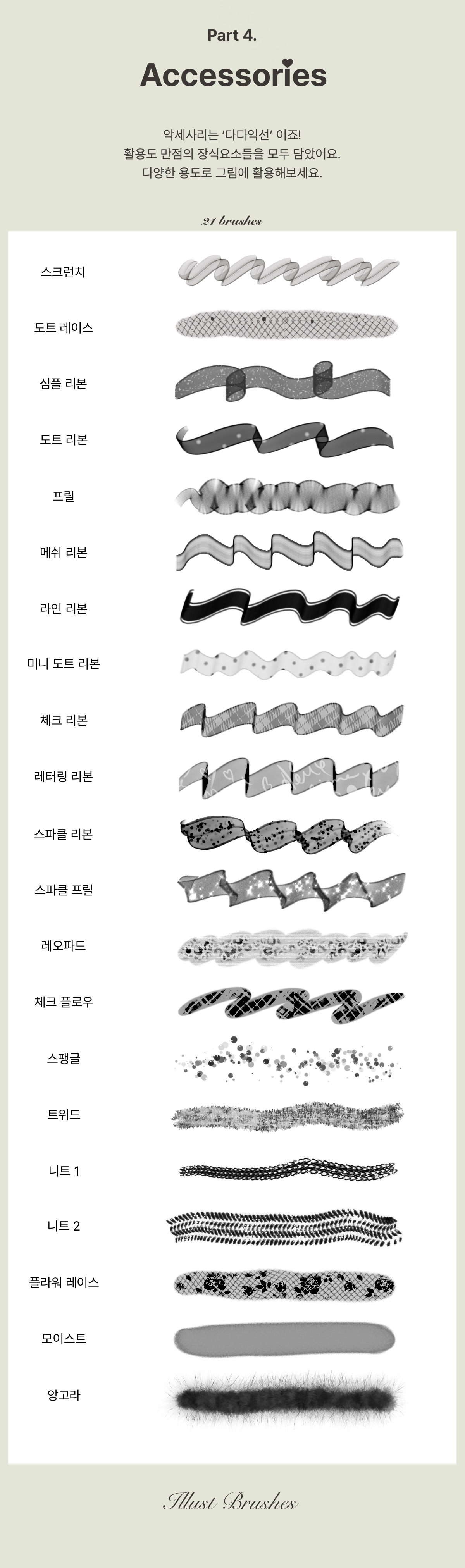 다양한 악세사리 요소의 브러시들도